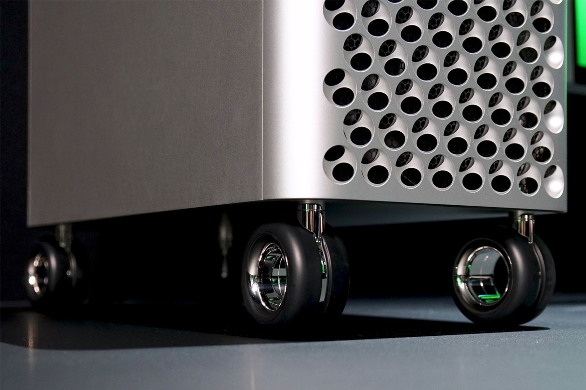 اپل همچنین بسته‌ی دیگری شامل پایه‌ی چرخدار را با قیمت بیشتر می‌فروشد. این بسته که Mac Pro Wheels Kit نام دارد، با قیمت ۷۰۰ دلار، یعنی تقریبا دوبرابر قیمت آیفون SE نسل دوم، دردسترس قرار می‌گیرد. اپل می‌گوید این پایه‌ی چر‌دار بدنه‌ای از جنس فولاد ضدزنگ و چرخ‌هایی لاستیکی دارد و به‌لطف آن خواهید توانست به‌راحتی رایانه‌ی مک پرو را در جاهای مختلف جابه‌جا کنید.