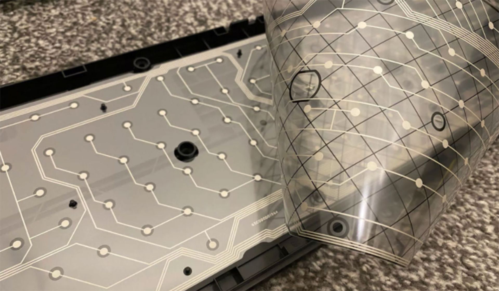 با حذف لایهی سیلیکونی به مجموعهای از سه ورق پلاستیکی میرسیم. دو مورد از آنها «کنتاکتهای سوئیچ» هستند و سومی صفحهای است که این دو را از هم جدا و از هرگونه خوانش اشتباه جلوگیری میکند. قرار دادن انگشت روی یک کلید، غشاها را به هم فشار میدهد؛ بهطوریکه نقاط زیر آن بخش به هم متصل میشوند. نتیجه این عملیات یک مدار بسته است که توسط یک تراشه مناسب همراهی میشود.