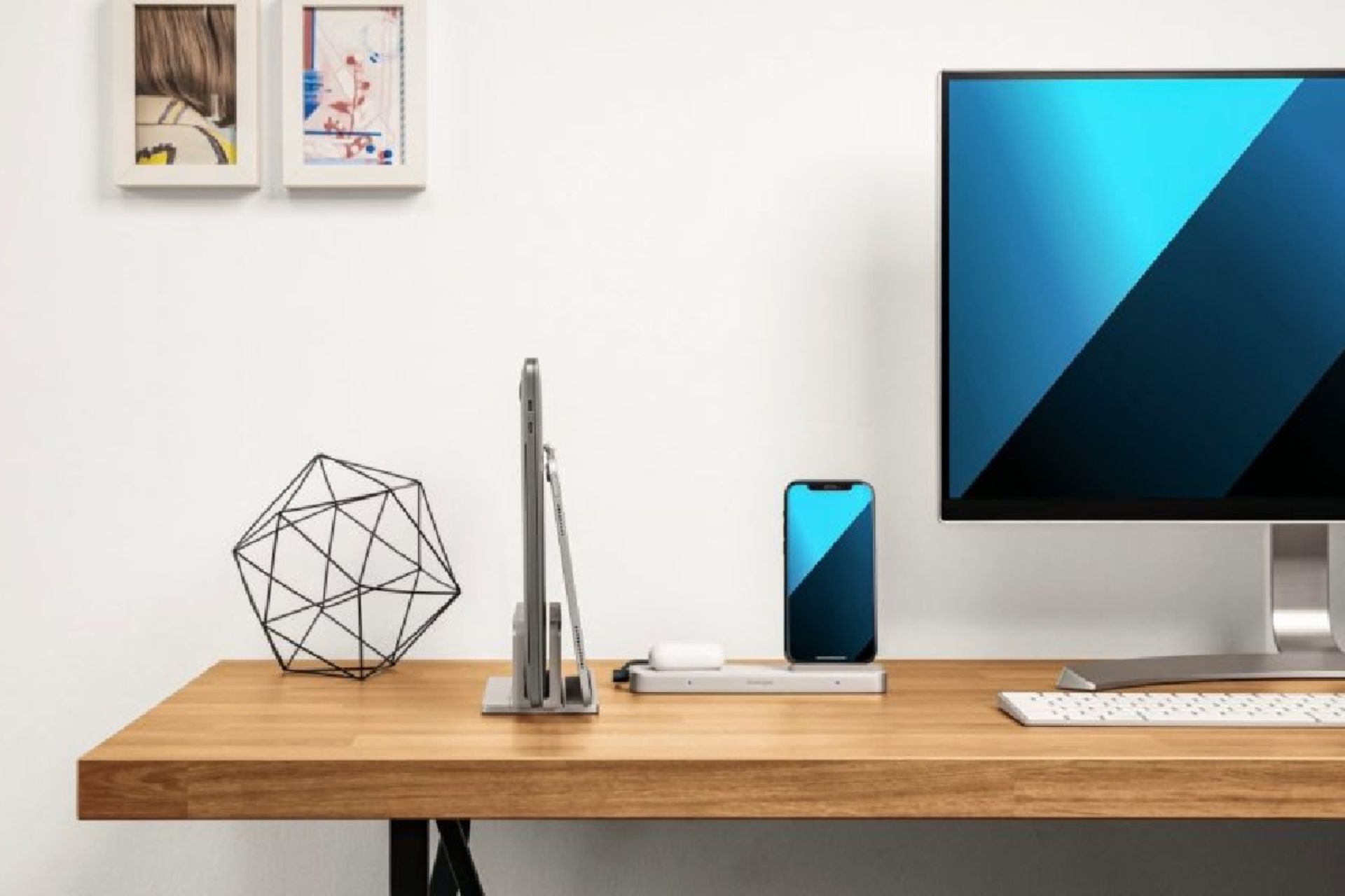 استودیوکدی از دو جزء مجزا شامل شارژر و پایه نگهدارنده تشکیل شد و پدهای شارژ دوگانه Qi نیز آن را همراهی میکنند. یک شارژر تخت فرورفته بهعنوان محل قرارگیری هدفونهای کاملاً بیسیم ایرپاد درنظر گرفته شده است؛ درحالیکه یک پایه شارژ زاویهدار، گوشیهای آیفون ۸ به بعد را بهصورت عمودی شارژ میکند. در مشخصات این محصول آمده است که میتواند ایرپاد را با سرعت ۵ وات و گوشی های آیفون را با سرعت ۱۰ وات شارژ کرد. افزون بر این، یک درگاه USB-C و یک درگاه USB-A نیز وجود دارد که به ترتیب از حداکثر سرعت شارژ ۲۰ و ۱۲ وات پشتیبانی میکنند.
