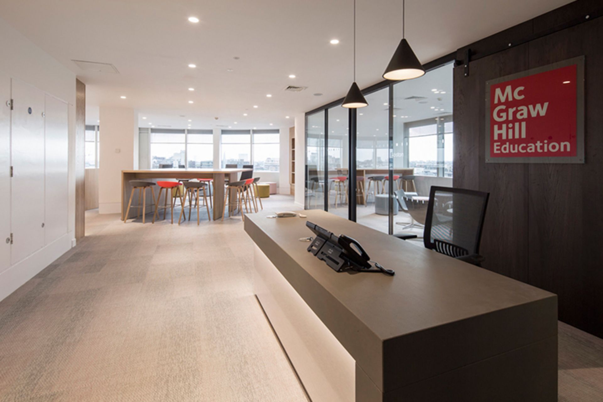 مک گروهیل یک شرکت انتشاراتی است که اکثر فعالیتهای آن تا به امروز در زمینه آموزش و یادگیری بوده است. مک گروهیل، طراحی و اجرای دکوراسیون جدید دفتر کار خود را به شرکت معماری و طراحی داخلی فابریک (Fabric Interior Design and Architecture) واگذار کرد. شرکت فابریک با اجرای طرحی جالب، یک محیط کار مطبوع و خوشایند برای کارکنان ایجاد کرده؛ مخصوصا اینکه طراحی جدید دفتر کار به موفقیتهای بخش فروش و نهایتا موفقیت این شرکت انتشاراتی بسیار کمک کرده است. مک گروهیل برای همکاری بیشتر و همچنین حمایت بیشتر از مشتریان شرکت که در منطقهی مرکزی لندن ساکن هستند، تصمیم گرفت دفتر کار خود را به این منطقه از شهر لندن منتقل کند.