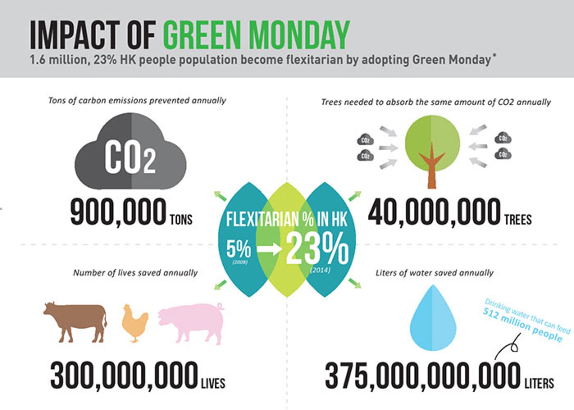 اهداف دوشنبه سبز مبارازه با تغییرات آب و هوایی، ناامنی غذایی جهانی و مسائل مربوط به بهداشت جهانی است. این شرکت هفتهای یک بار به مدارس، شرکتهای تهیه غذا و رستورانهای زنجیرهای غذای گیاهی ارائه میدهد و هدف آن تغییر عادتهای غذایی جامعه است. ۱.۶ میلیون نفر در هنگکنگ در هفته یکبار جهت رواج این نوع تغذیه از غذای گیاهی استفاده میکنند. این کار در بیش از ۳۰ کشور گسترش یافته است.