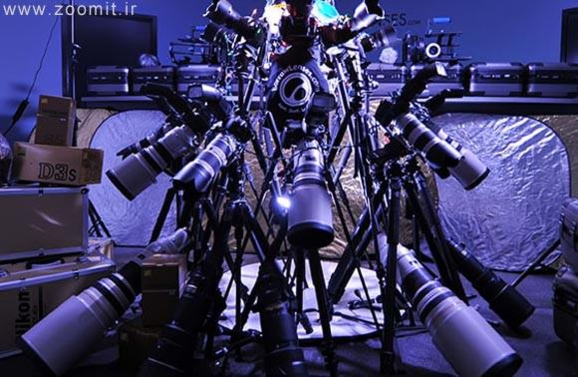 - قسمت بالا: هشت دوربین نیکون D3/D3s/D3x – بدنه دوربین و لنزهای 24-70 f/2.8