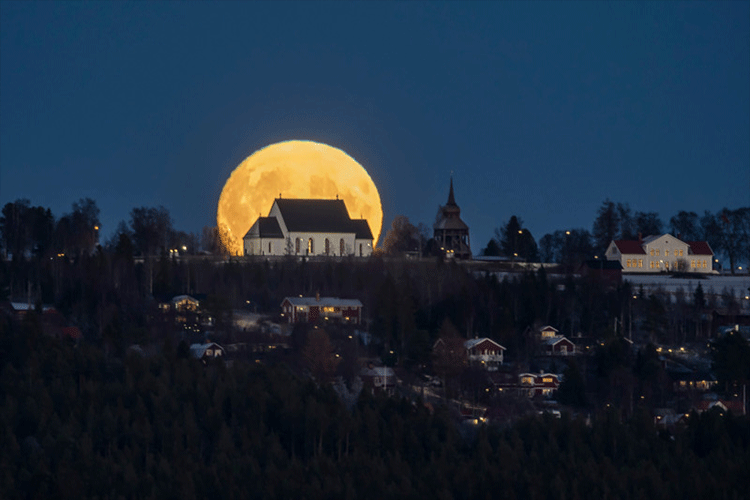 ماه گذشته، هنگامی که قرص ماه نوامبر را دیدم، تصمیم گرفتم از آن عکس بگیرم. کلیسای ۸۰۰ سالهی فروزو (Frösö) در سوئد واقع است و من برنامهریزی کردم تا بتوانم از این منظره، یعنی قرص ماه هنگامی که پشت این کلیسا است، عکس بگیرم.