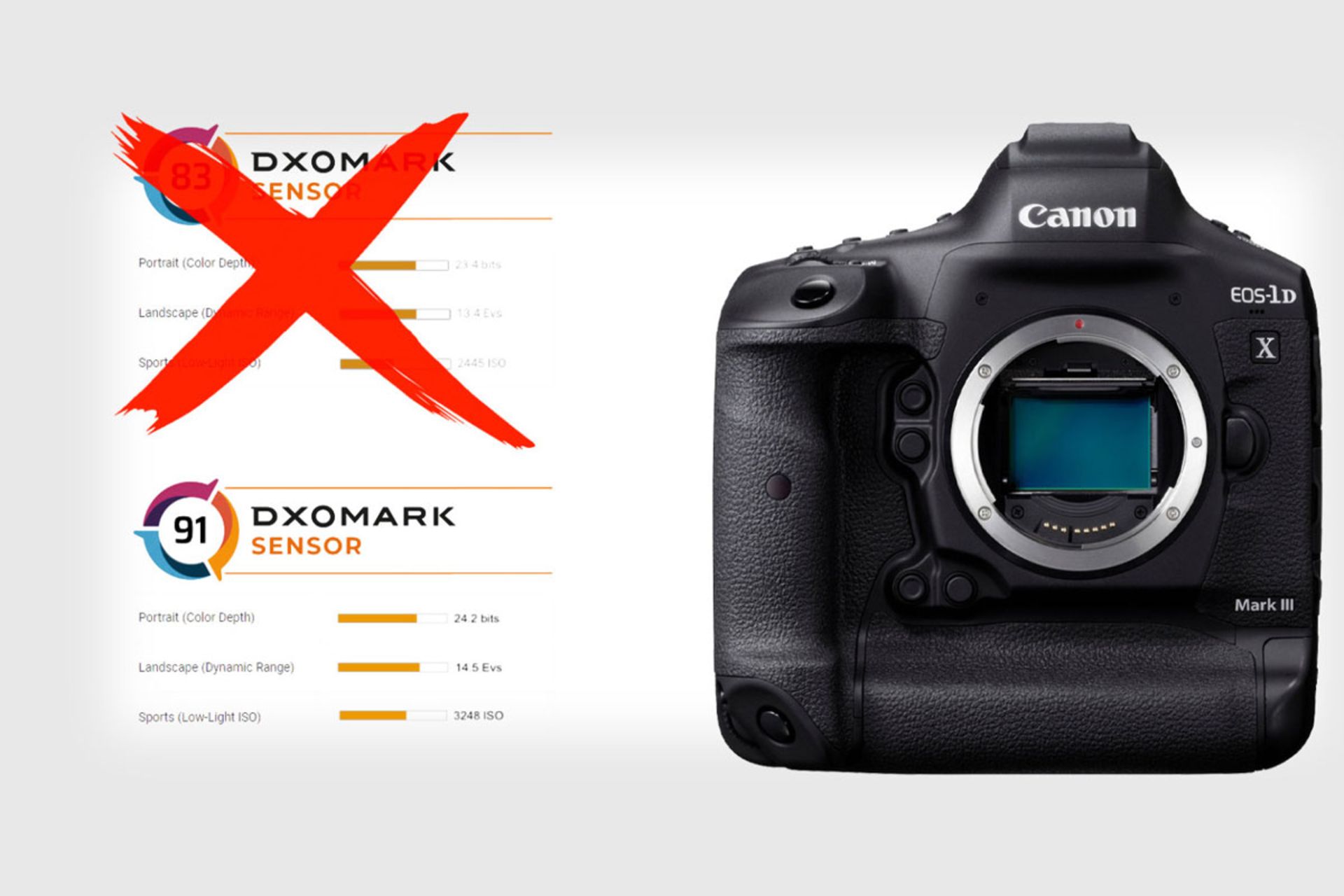 وقتی DxOMark نتایج بررسی Canon 1D X Mark III را منتشر کرد، کاربران و کارشناسان از امتیازهای منتشرشده متعجب شده بودند. دوربین جدید ژاپنیها، امتیازی پایینتر از بسیاری از دوربینهای نسل قبلی داشت. حسگر آن حتی در مقایسه با دوربین نسل اول 1D X هم در دو گروه، امتیاز پایینتری دریافت کرده بود. با وجود عجیب بودن نتایج بررسی، DxOMark روی اعداد و ارقام خود پافشاری میکرد و حتی مطالبی برای توضیح بیشتر و شرح امتیازها دراختیار کاربران و رسانهها قرار داد.