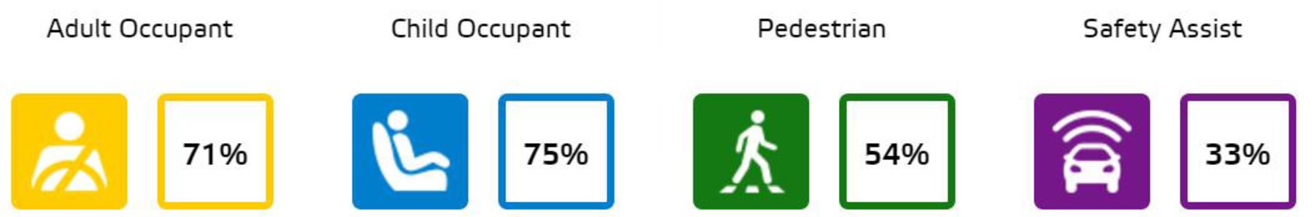 خودروی مورد آزمایش از مشخصات ایمنی جدول زیر برخوردار بوده است: