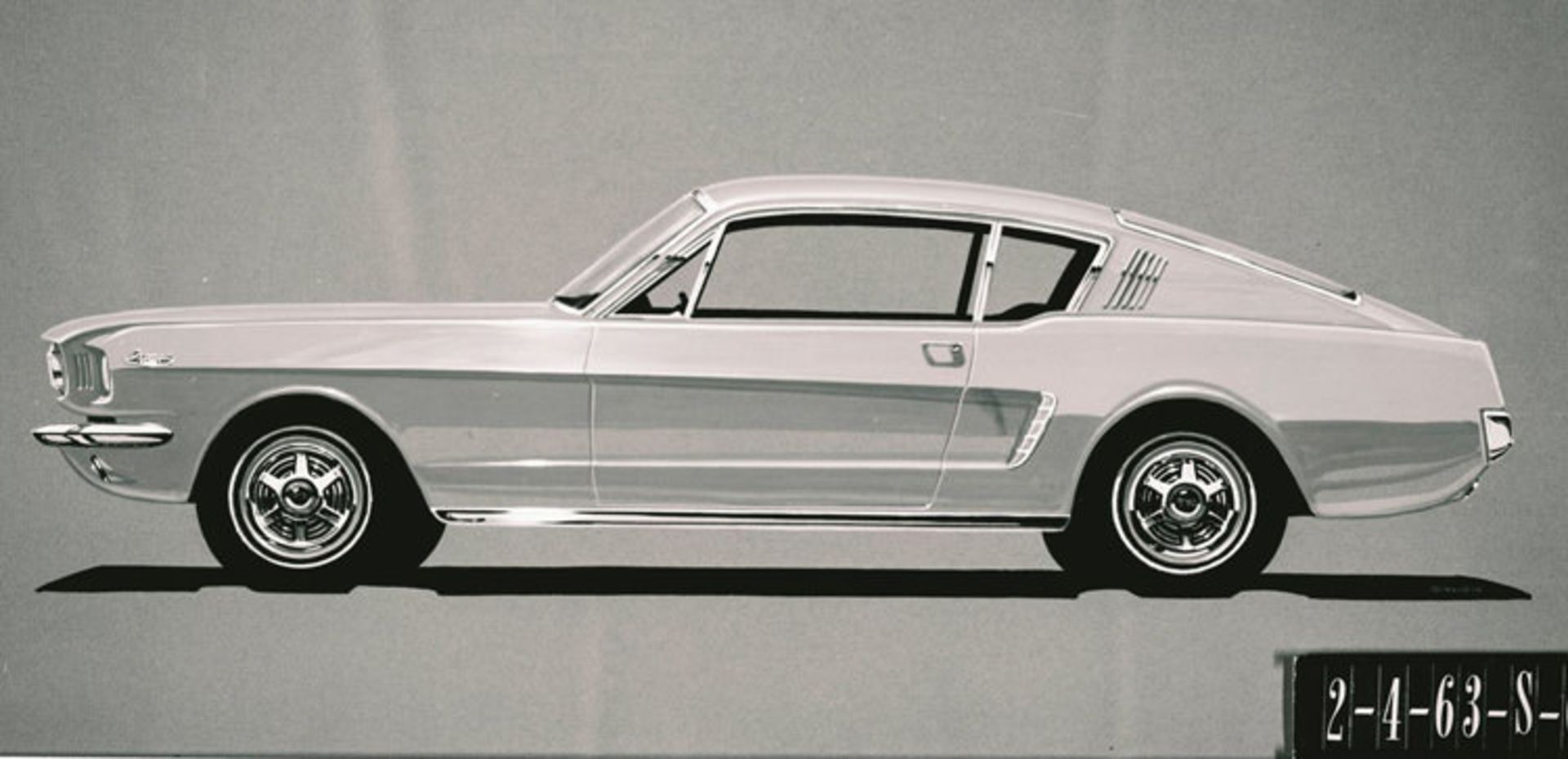 به انعکاس نور در این طرح بنگرید. طرحهای ابتدایی مدل ۱۹۶۳ فوقالعاده بودند. در واقع باید گفت که هرچند موستانگ ۲ در سالهای ۱۹۶۴ تا ۱۹۶۵ ساخته شد، اما در این مدت ۴ مدل از طراحیهای آن کنار گذاشته شد. برخی از طرحهای تهیه شده برای موستانگ در آن زمان بسیار عجیب و غیرعادی بودند.