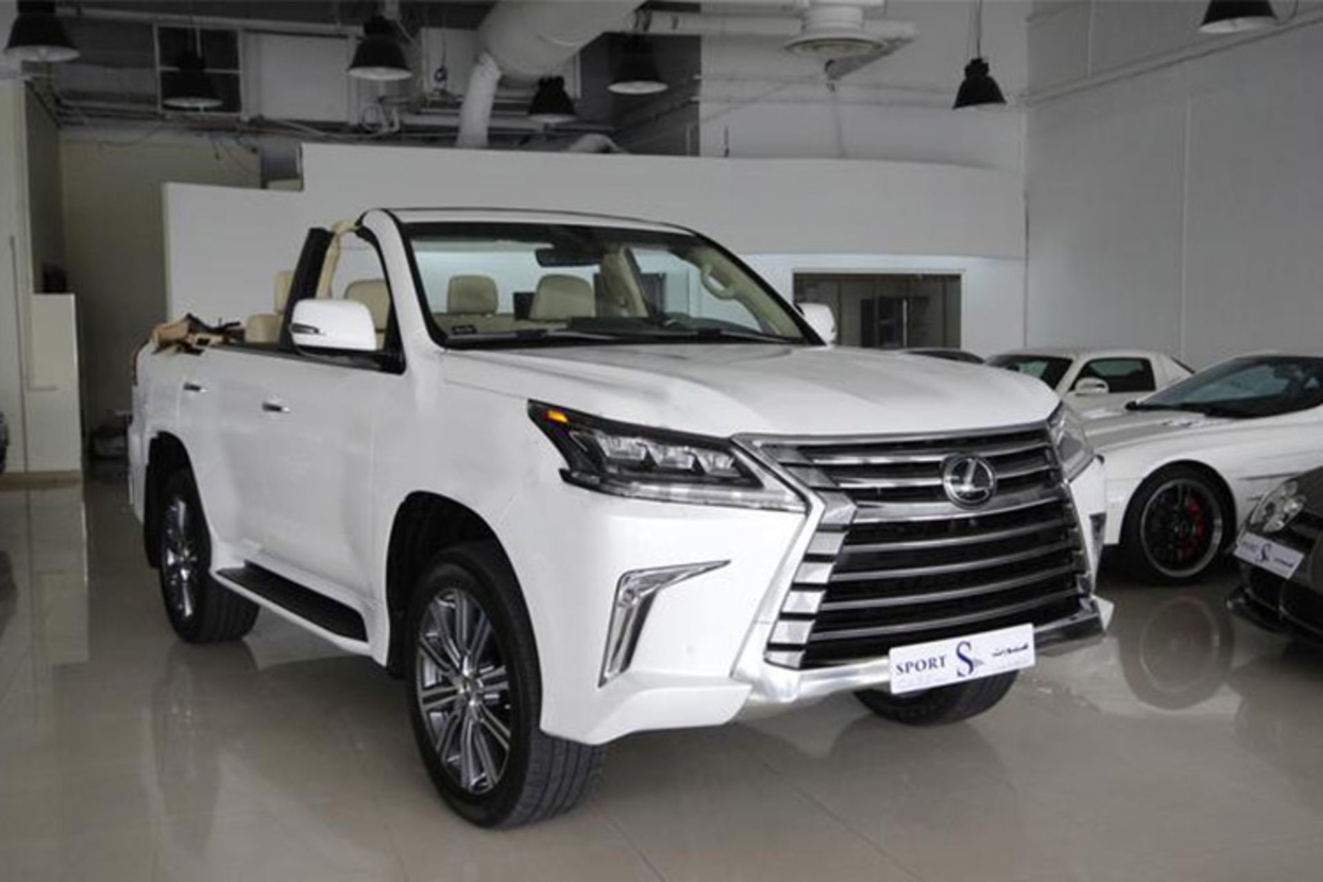 نسخهی روباز لکسوس LX 570 2016 در یکی از نمایشگاههای خودرو در دبی آماده برای فروش است. طبق گفتههای UAE Sale، این خودرو ۳۵۳ هزار دلار قیمت دارد و صفر کیلومتر است.