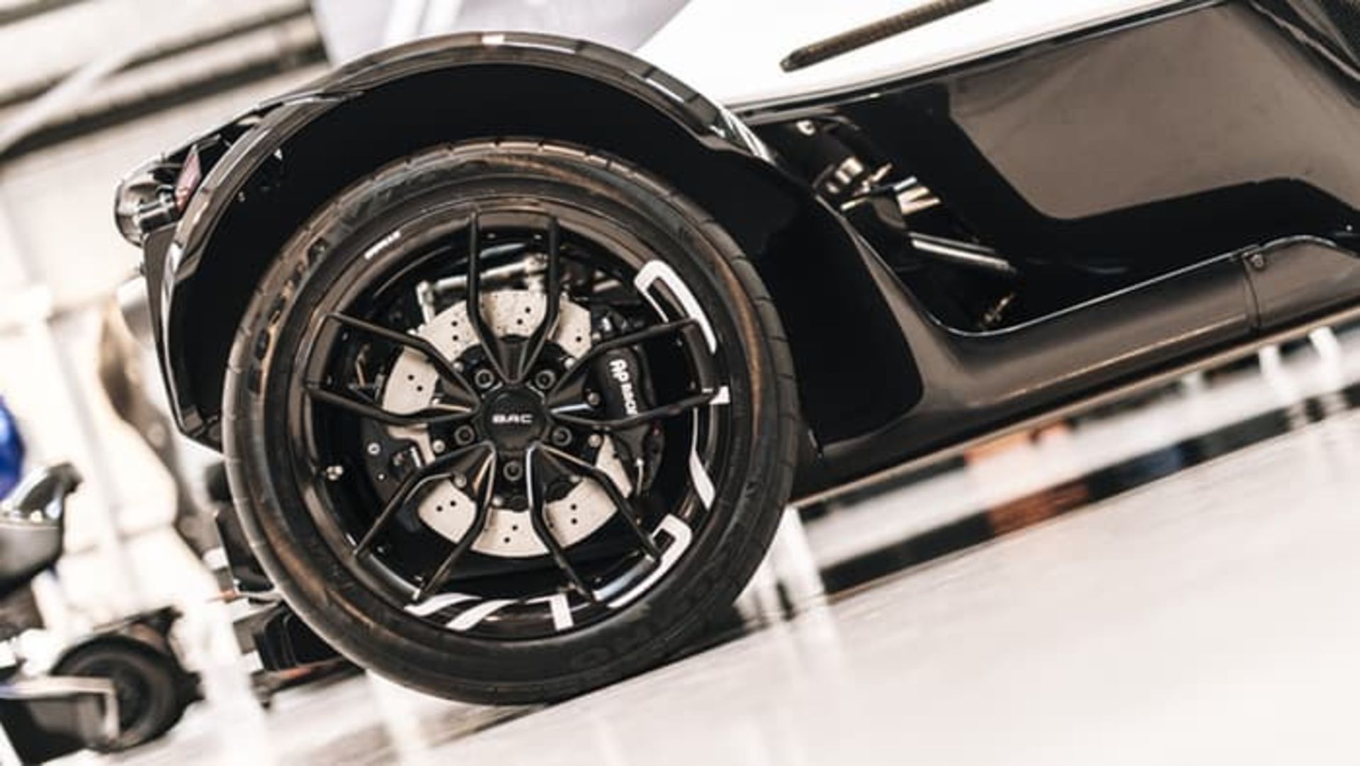 چرخهای جدید BAC با وجود این که کاملا از کربن ساخته نشده، اما بسیار سبک هستند؛ به طوری که چرخهای جلویی تنها ۵.۷ کیلوگرم وزن دارند که با این وزن کم منجر به صرفه جویی ۲۳ درصدی در مصرف سوخت میشوند. همچنین این وزن کم در چرخهای عقبی نیز تکرار شده است به طوری که چرخهای عقبی نیز تنها ۶ کیلوگرم وزن دارند. البته ممکن است این تغییرات وزن خیلی به چشم شما نیاید ولی بهتر است بدانید همین تفاوتهای اندک هنگام راندن و کنترل خودرو در مانورها، اهمیت بسیار زیادی پیدا میکنند. این جا است که پیچهای تیتانیومی که تنها ۳۰.۲ گرم وزن دارند اهمیت مییابند؛ این پیچها در مجموع موجب کاهش وزن ۲۱۲.۵ گرمی در هر چرخ میشوند.