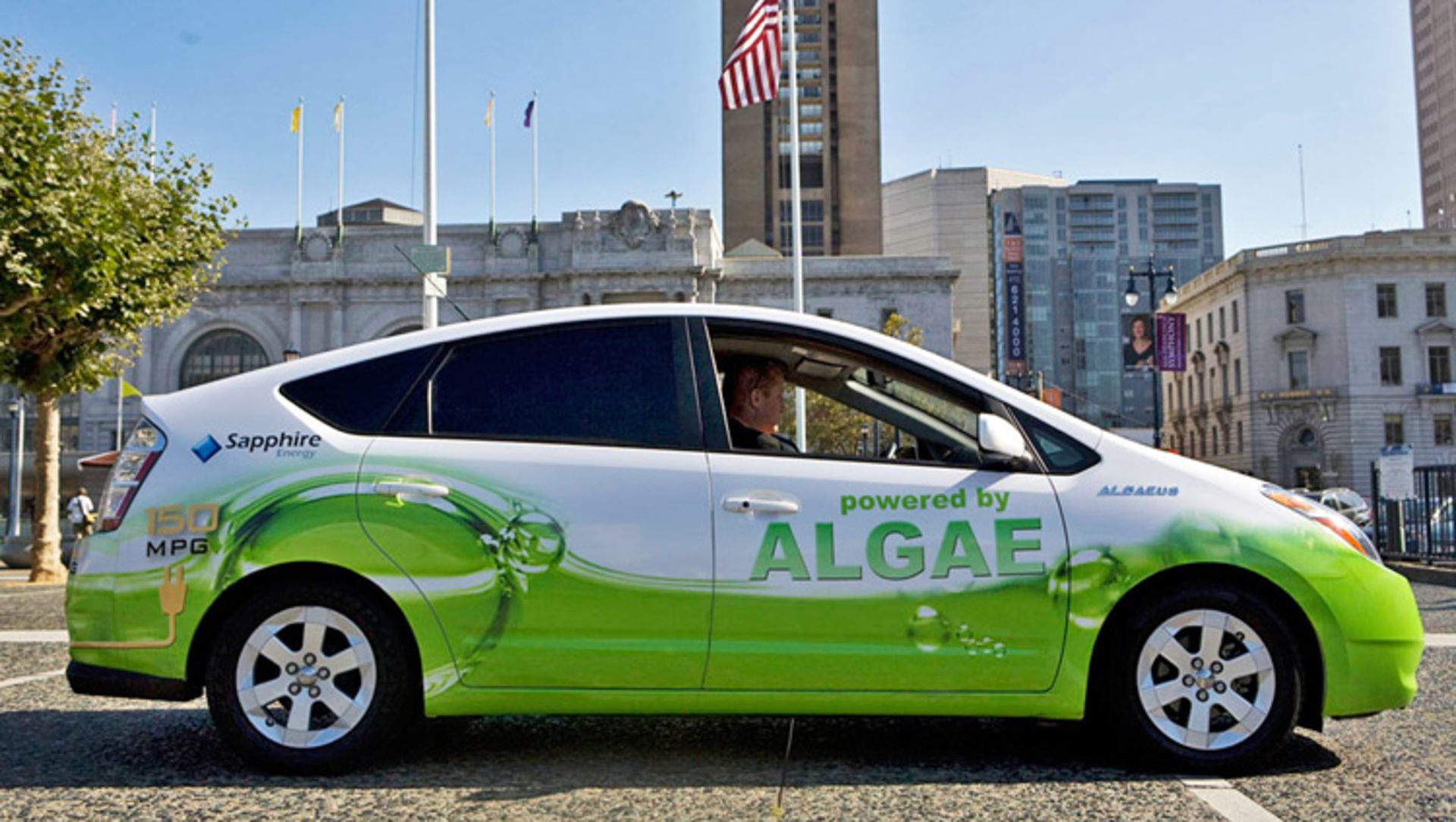 هر گونه سوختی را میتوانستیم برای خودروها متصور باشیم، اما استفاده از جلبک در نوع خود جالب است. اولین خودروی دنیا با سوخت جلبکی درواقع یک تویوتا پریوس هیبریدی به نام Algaeus است که سال ۲۰۰۹ میلادی در خیابانهای سانفرانسیسکو از آن رونمایی شد. این خودروی سبز تنها با ۲۵ گالن از جلبک سبز خام بدون هیچگونه دستکاری میتواند سوخت مورد نیاز خود را تامین کند. این خودروی جادهای بخشی از کاروان خودروهای سبز است که سفر آنها تحت عنوان مستندی به نام FUEL به صورت فیلم تهیه شده است. در این فیلم وابستگی آمریکا به سوختهای دیگر را نشان میدهد. سوخت جلبکی هنوز گرانتر از بنزین است ولی کمپانیهای فعال در حوزهی انرژی روی کاهش هزینهها و تجهیز خودروهای بیشتر به این ارگانیسم سبز کار میکنند.