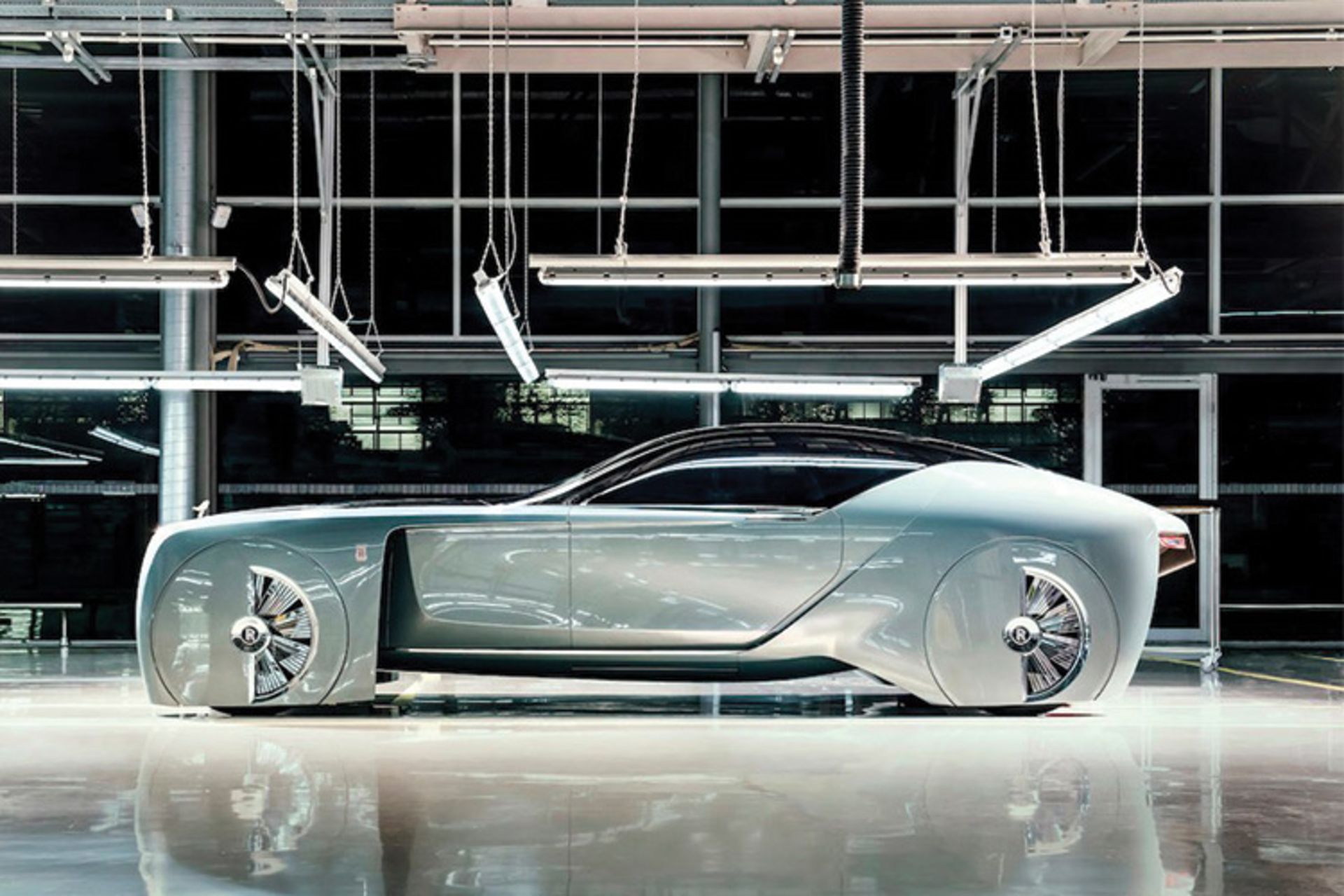 داخل خودروی مفهومی رولزرویس Vision 100 آیندهای را به نمایش میگذارد که در عصر وجود و استقرار کامل خودروهای بدون راننده، خواستار آن هستیم. به دلیل عدم نیاز به راننده، فضای داخل خودرو تنها شامل یک مبل ابریشمی دونفره در مقابل یک نمایشگر OLED زیبا است.