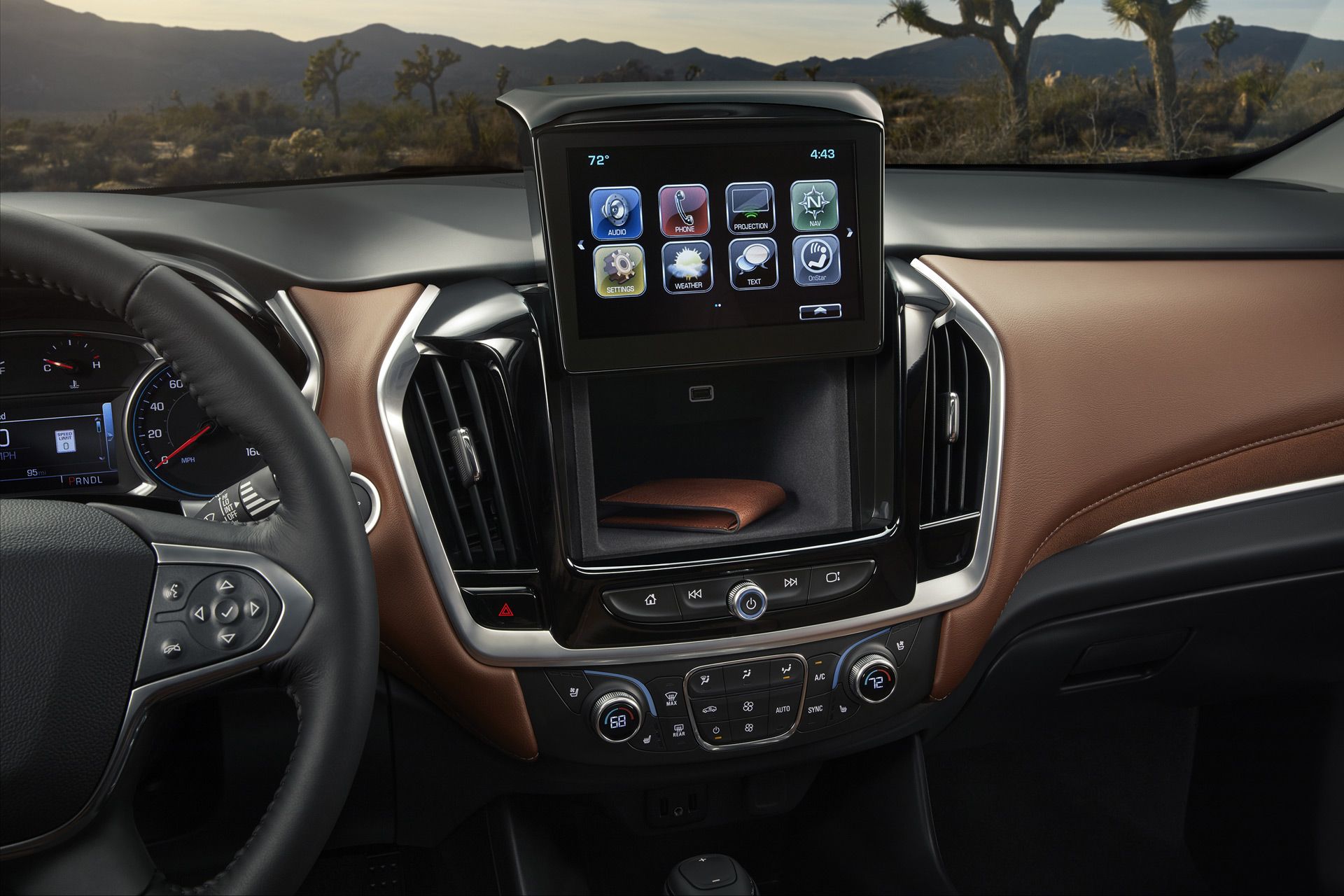 شورولت برای فضای داخل تراورس دو سیستم سرگرمی با نمایشگر ۷.۰ و ۸.۰ اینچی در نظر گفته است که از پلتفرمهای Apple CarPlay و Android Auto پشتیبانی میکنند. در داخل کابین خودرو یک هاتاسپات OnStar 4G LTE Wi-Fi نصب شده است. در هر سه ردیف از صندلیهای تراورس پورتهای USB برای شارژ ابزارهای الکترونیکی در نظر گرفته شده است، ضمن آنکه مجموعهای جامع از ابزارهای الکترونیکی مانند سیستم هشدار برخورد و ترمز خودکار به منظور سهولت بیشتر رانندگی با تراورس، به این SUV اضافه شده است.