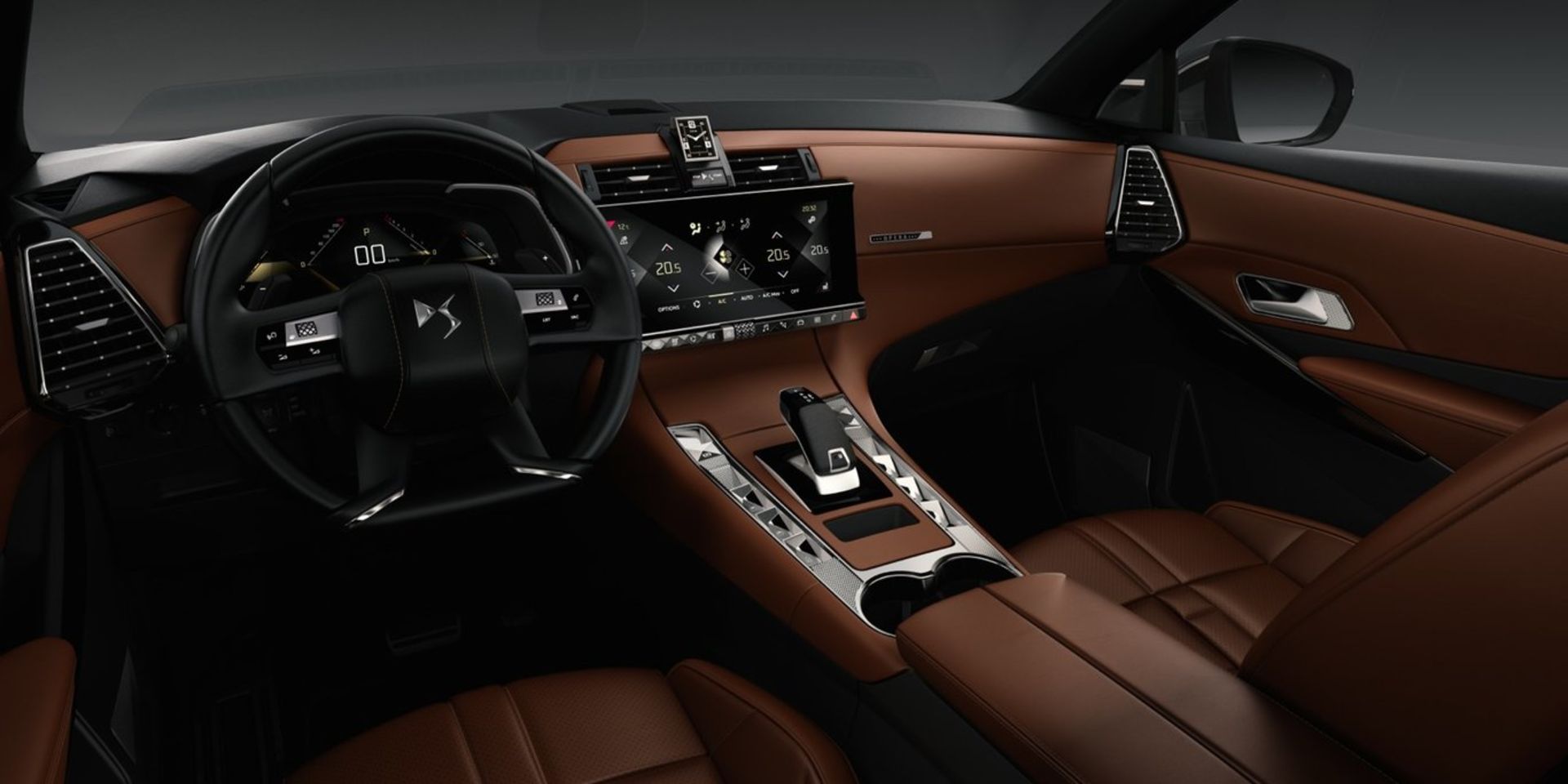 در داخل خودروی DS7 Crossback، شرکت دی‌اس شجاعانه فرانسوی بودن خود را با ارائه‌ی تریم‌های مختلف نشان می‌دهد. چهار تریم داخلی Bastille ،Rivoli ،Opera و Performance Line قابل انتخاب هستند؛ بنابراین گزینه‌های شخصی‌سازی یکی از مفاهیم این برند است. در اتاق این خودرو از دو نمایشگر ۱۲ اینچی استفاده شده است؛ یکی برای مسیریابی و سیستم چندرسانه‌ای و دیگری با ابزار دیجیتال قابل شخصی‌سازی، مخصوص راننده است.