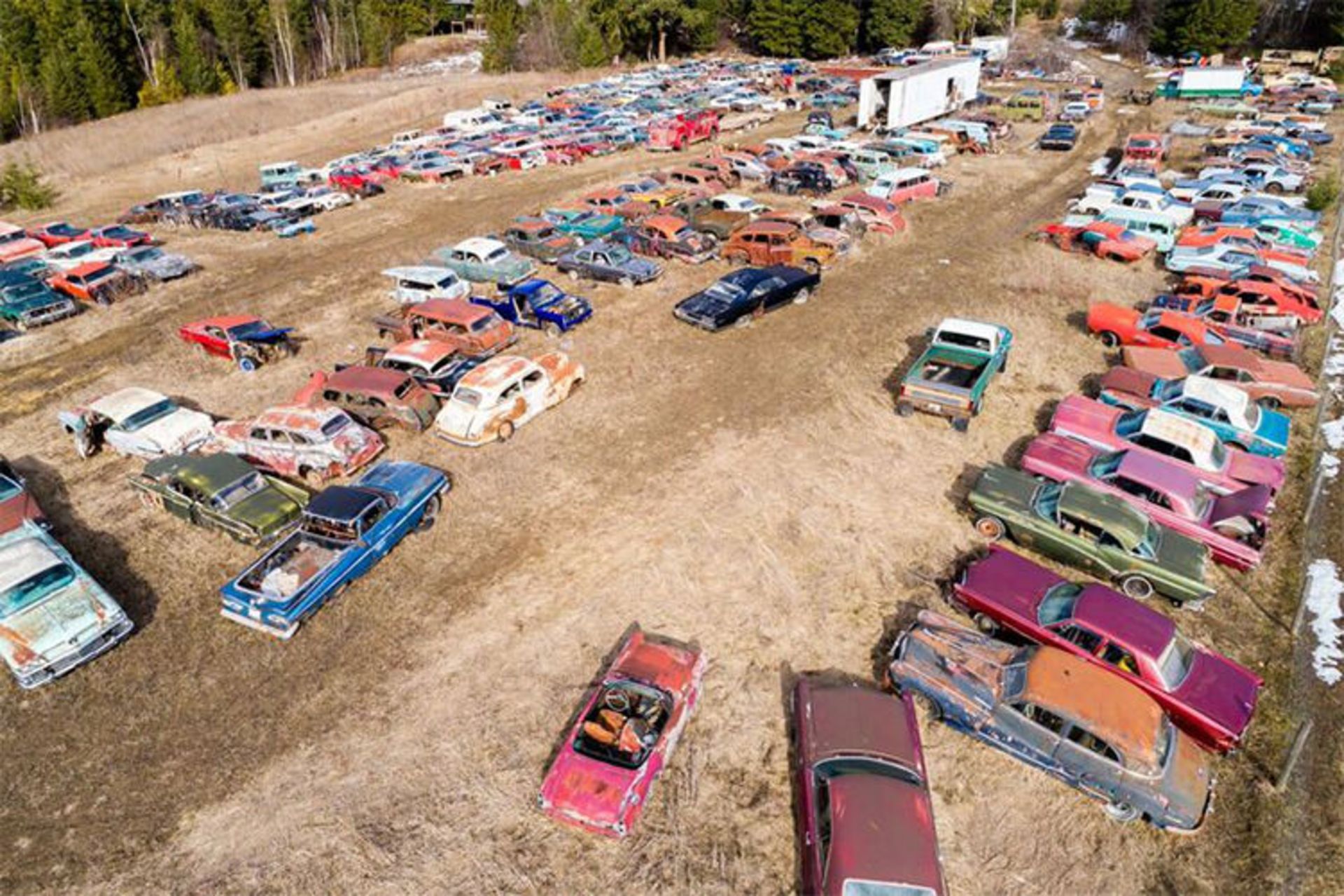 این خودروها تنها نمونه‌ی کوچکی از ۳۰۰ خودروی موجود در زمینی هستند که در Tappen، بریتیش کلمبیا در کشور کانادا برای فروش قرارگرفته است.