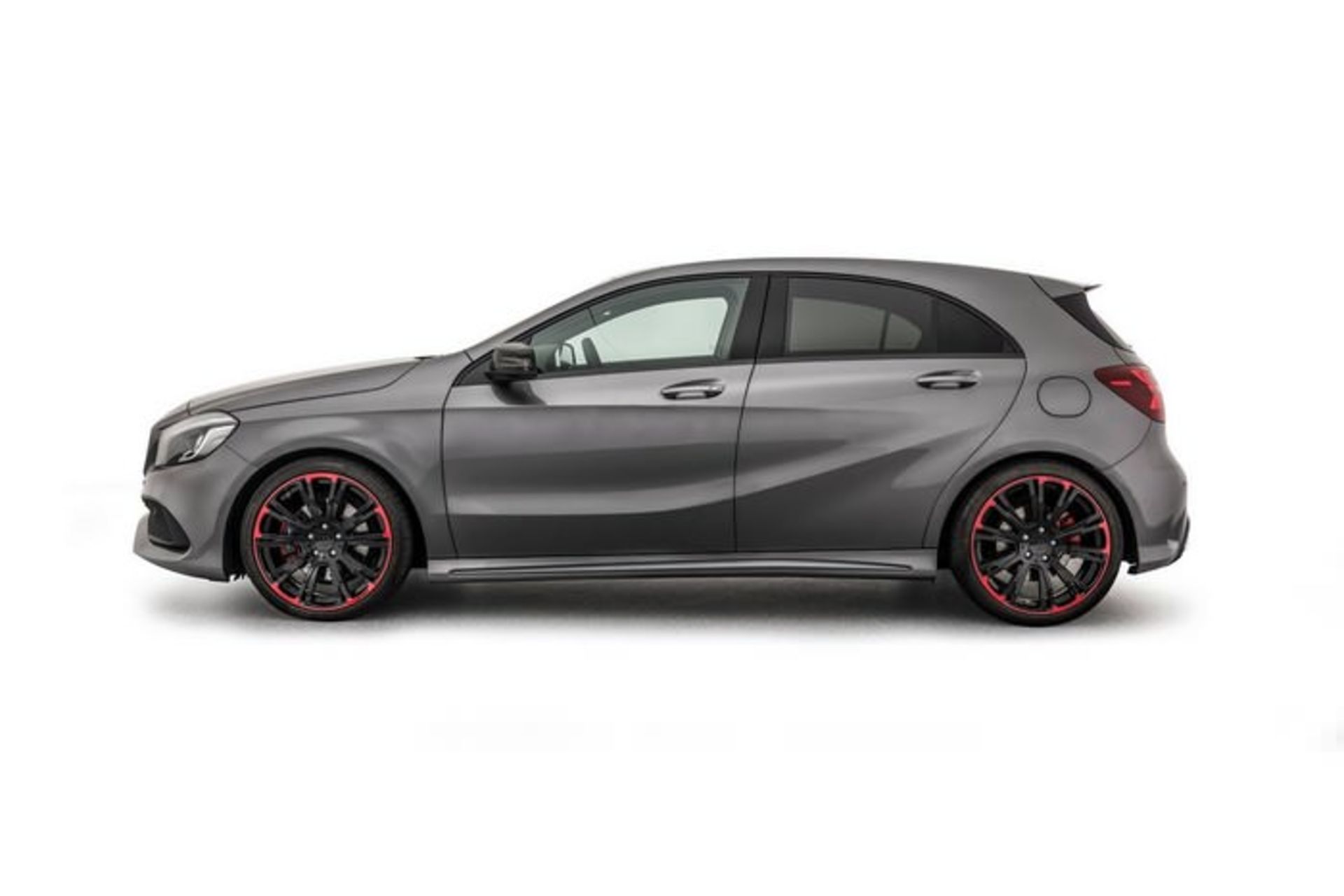 خودرویی که در تصاویر مشاهده میکنید، مدل پرچمدار A کلاس است که با نام AMG A45 4Matic شناخته میشود. این مدل به رینگهای ۱۹ اینچی یکتکه (مونوبلاک) برابوس به رنگ مشکی و قرمز، دیفیوزر ویژهی عقب و سیستم اگزوز اسپرت برابوس مجهز شده است.