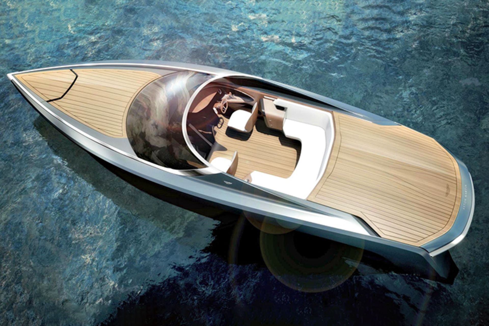 بخش ویژهی سفارشیسازی استون مارتین (دپارتمان Q)، در ساخت رنگ و موارد استفادهشده در این قایق همچون رنگ آبی بدنه و رنگ آبی/کرم و نوارهای کرومِ مبل و صندلی، همکاری کرده است. محفظهی پیشرانه نیز با عایق صدا پوشانده شده است تا قوانین سفتوسخت دریاچههای سوئیس را در هم نشکند. در داخل کابین یک مبل راحتی تاشو، یک میز طرح چوب و یک یخچالِ نوشیدنی فیبر کربن زیبا به رنگ آبی قرار داده شده است.