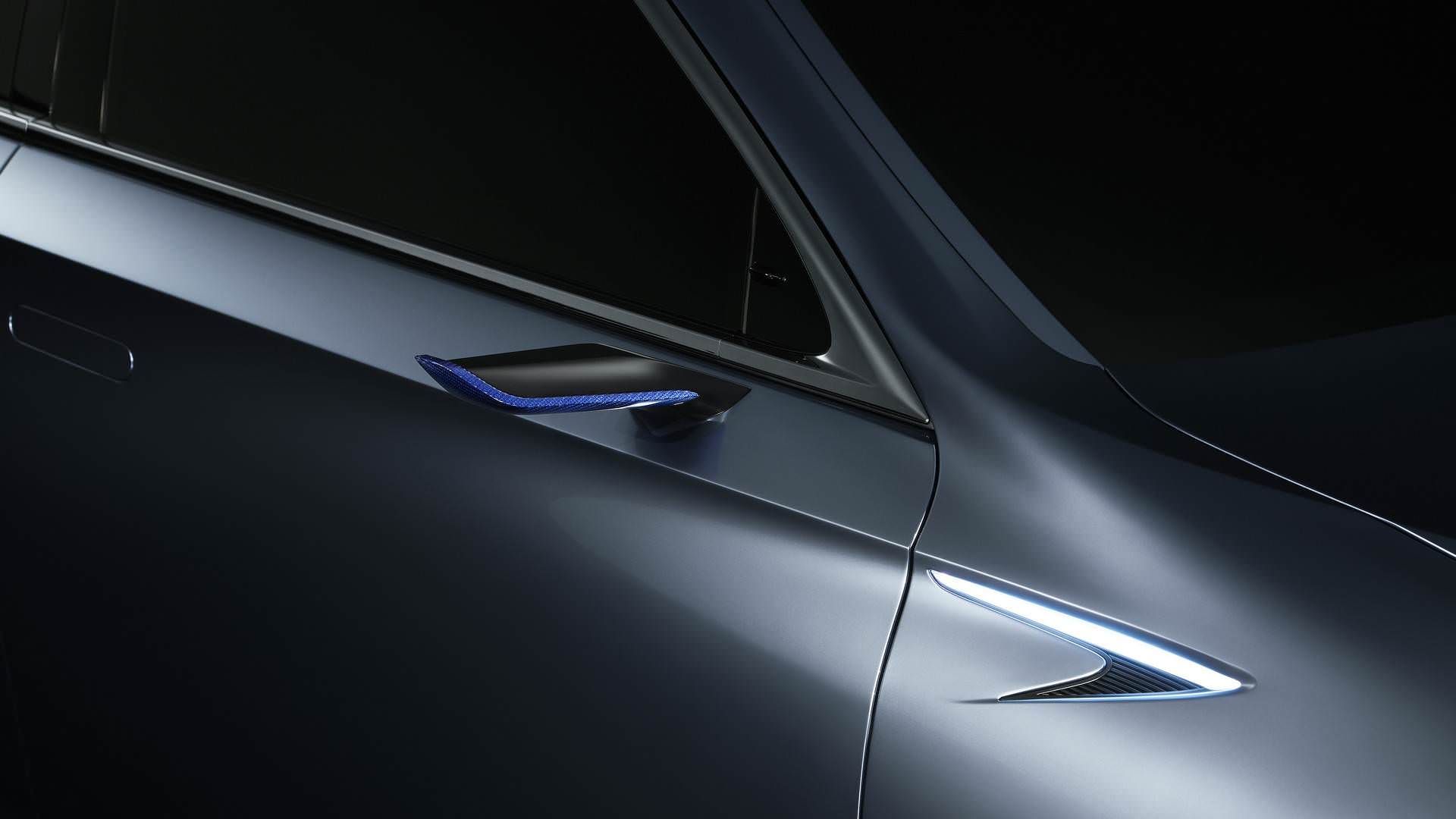 چراغهای پیشرفتهی مجهز به آخرین تکنولوژیهای روز، چهرهای زیبا و دلفریب به این خودرو داده است. لکسوس از تکنولوژی لیزر در این چراغها بهره برده است تا مطمئن باشد که روشنایی چراغها در بالاترین سطح عملکرد خود قرار دارد. شاسی و بدنهی این خودرو روی چرخهای ۲۲ اینچی سوار شده است و به جای استفاده از آینههای سنتی در کنارههای خودرو، از دوربینهای پیشرفته با قابلیت نمایش خودروهای کناری و پشتی با زاویه بهمراتب بیشتر، بهره برده است. دستگیرهی درها نیز تغییر اساسی داشته و کاملا همسطح با بدنه طراحی شده است.