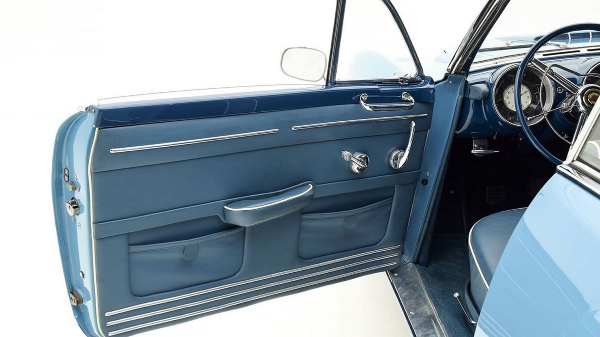 در خصوص ظاهر این خودرو ابتدا باید به رنگ آبی فوقالعاده زیبای آن اشاره کرد که در کنار قطعات کرومی، ظاهری بسیار زیبا و کلاسیک ایجاد کرده است. همچنین باید اشاره کنیم این خودرو بیش از یک دههی پیش یعنی در سال ۲۰۰۱، مورد یک بازسازی کامل قرار گرفته است. از دیگر نکات ظاهری این خودرو میتوان به ست کامل رینگهای سیم پرهای کرومی اشاره کرد که دور آنها را تایرهای کلاسیک مدل قدیمی با حاشیههای سفید احاطه کردهاند. در داخل کابین نیز میتوان استفاده گسترده از رنگ آبی و پوششهای وینیل را مشاهده کرد. ضمن اینکه برخی قسمتها نیز به رنگ سفید رنگآمیزی شدهاند. بسیاری از بخشهای اصلی کابین خودرو از جمله ساعت، رادیو، غربیلک فرمان و حتی فندک، دستنخورده و سالم هستند.