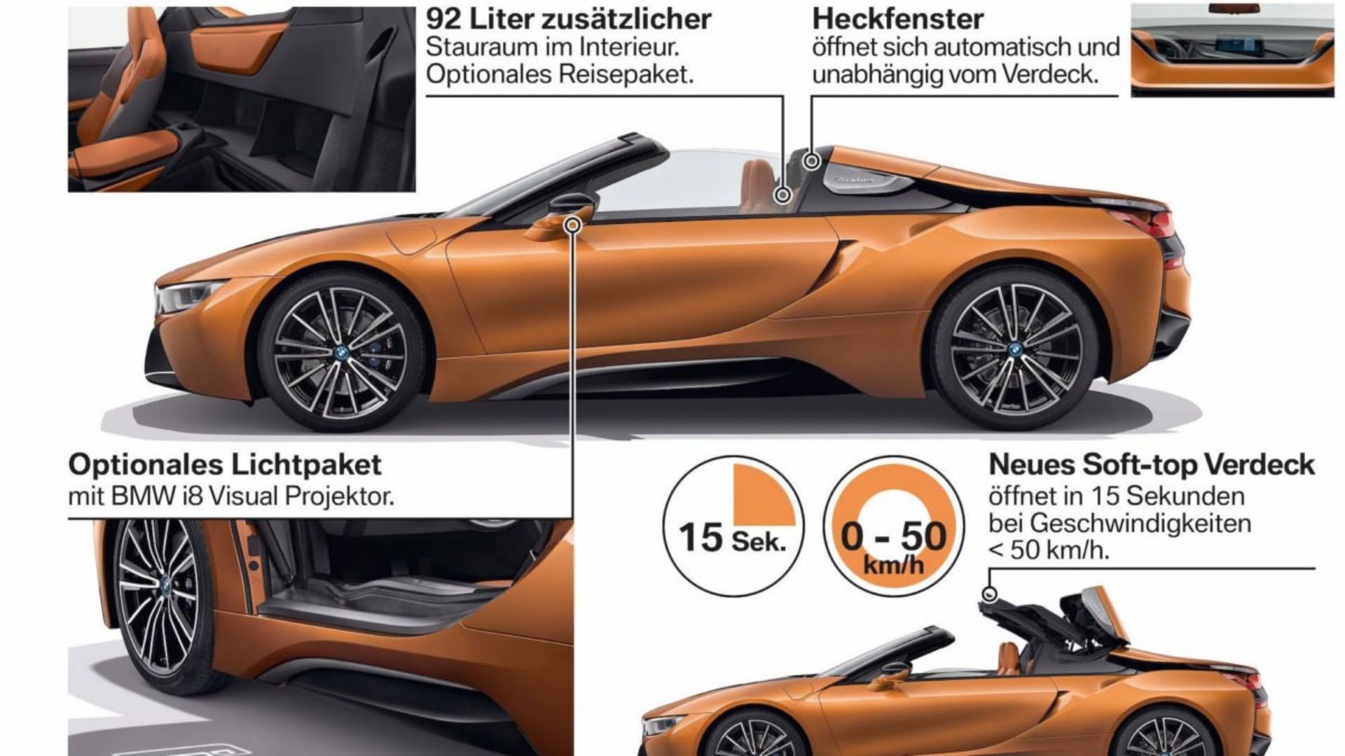 بیامو i8 نقش مهمی در دنیای اتومبیل بازی میکند و نهفقط در دنیای امروز بلکه در بین اتومبیلهای آینده شهرت خواهد داشت. همگان منتظر این بودند تا بیامو مدل رودستر i8 را معرفی کند که در نهایت، این عمل در نمایشگاه خودروی لسآنجلس انجام شد. این اسپرت هیبریدی رودستر قرار است در کنار مدل پایه i8 به تولید برسد. سقف بازشوندهی خودرو این قابلیت را دارد تا جمع شود و در پشت صندلیها جای بگیرد. در صورت باز بودن سقف، i8 رودستر نمایی بسیار جالب پیدا میکند. همچنین رنگ نارنجی متالیک جدیدی با نام E/COPPER برای این خودرو عرضه خواهد شد که میتواند بسیار جلب توجه کند و جذابیت بالایی داشته باشد.