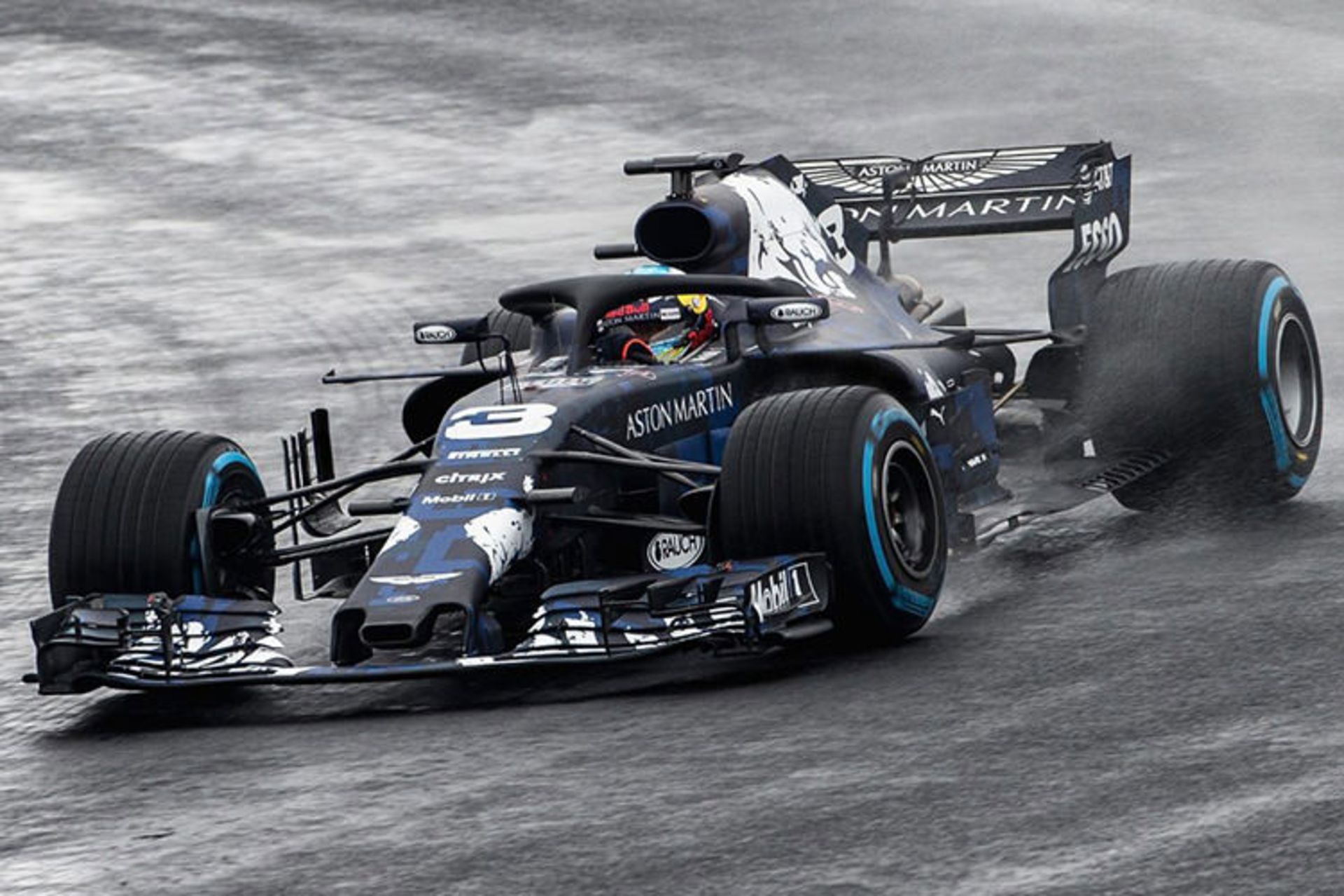 با اینحال این نسخهی ویژه در جریان روز فیلمبرداری پیش از فصل در پیست سیلوراستون انگلستان توسط ریکاردو، هر چند به دلیل قوانین در محدودیت مسافت ۱۰۰ کیلومتری، به نمایش درآمد. نشان شرکت خودروساز بریتانیایی استون مارتین در بخشهایی از بدنه، بهخصوص بالهی عقب جلب توجه میکند. استون مارتین هدف جدی خود برای شرکت در مسابقات فرمول یک را با اسپانسری تیم ردبول در فصل ۲۰۱۸ آغاز کرده است.