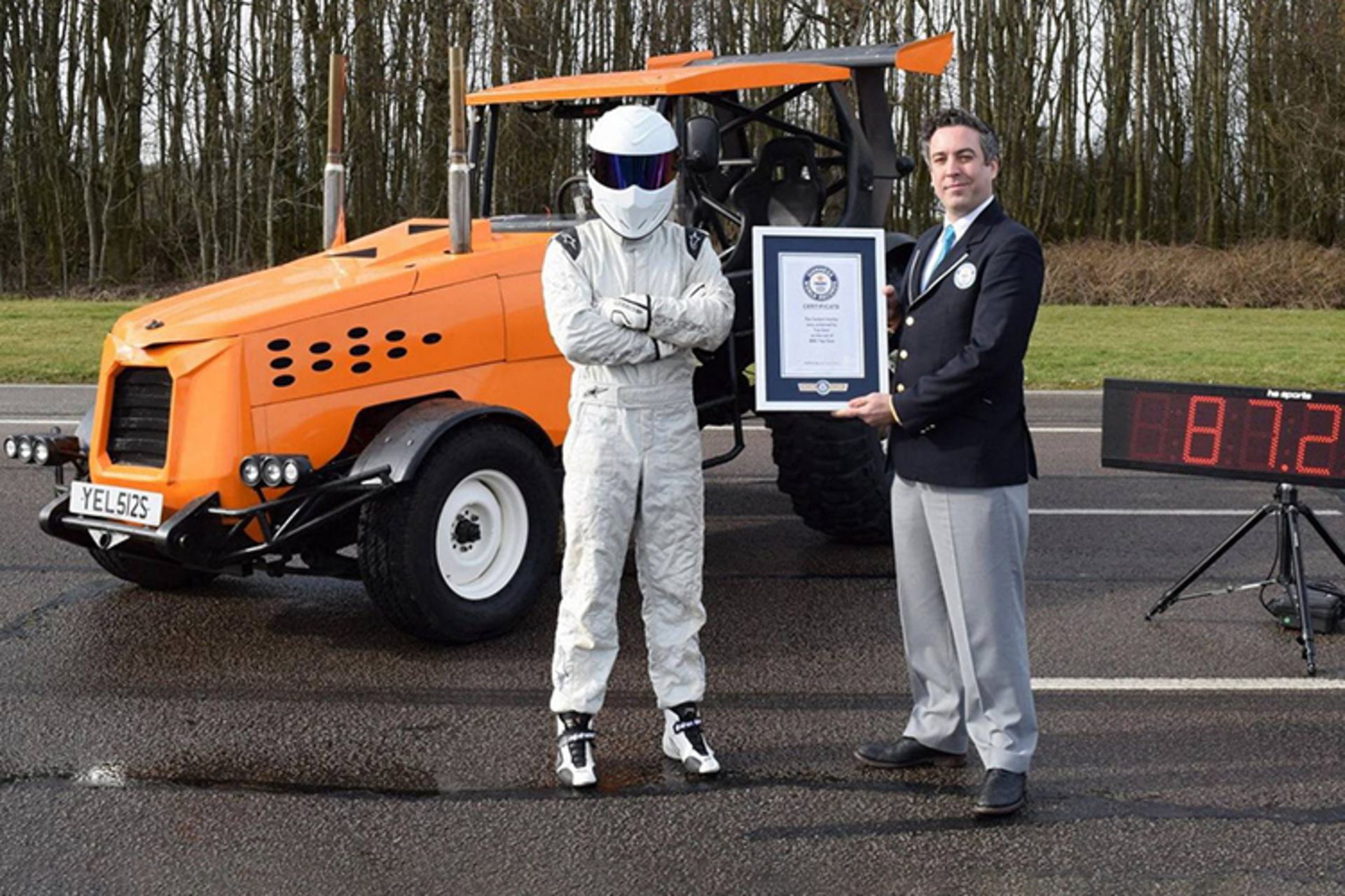 با حضور کارشناسان گینس در برنامه‌ی تاپ‌گیر، استیگ به کمک یک نمونه‌ی تقویت‌شده توانست رکورد سریع‌ترین تراکتور دنیا را ثبت کند.