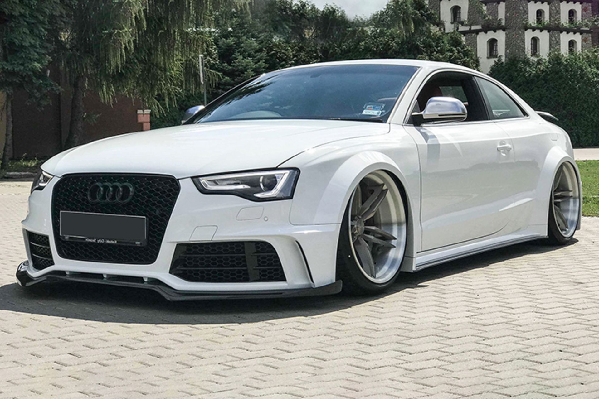 خودرویی که SR66 Design برای شروع انتخاب کرده است نسخهی فیس لیفت شدهی آئودی S5 کوپه است. آنها یک کیت بدنهی پهن پیکر را روی این خودرو نصب کرده. این کیت بدنه شامل سپرهای جلو و عقب تغییر یافته، اسپیلیتر جلو، دیفیوز عقب، گلگیرهای پهن و بالهی عقب است. رنگ قسمتهای این بادی کیت نیز از نوع رنگهای کد بندی شده هستند و به این ترتیب با رنگ اصلی خودرو کاملا همخوانی دارند. از آنجایی که تیونر خواسته تا این خودرو را شبیه به خودروهای مسابقهای تیونیگ کند، یک سیستم اگزوز حرفهای با نام Armytrix نیز روی آئودی S5 کوپه نصب کرده است که صدایی بسیار جذابی را تولید میکند. البته پیشرانهی V8 این خودرو به صورت استاندارد نیز صدای جذابی تولید میکند اما حالا با نصب این سیستم اگزوز میتواند به خوبی نظر علاقهمندان به خودرو را به خود جلب کند.