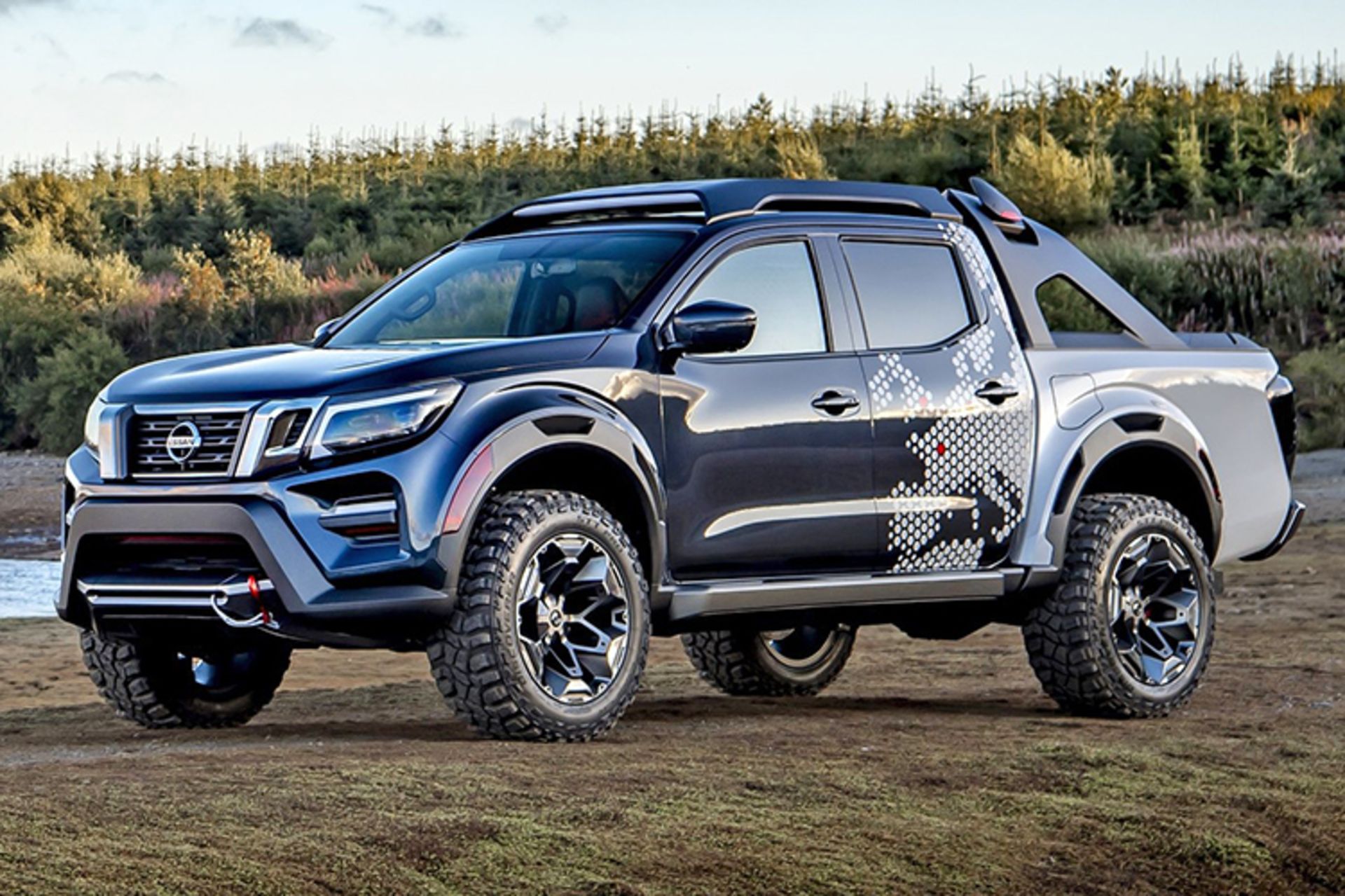 طراحی مفهومی نیسان ناوارا از کیهان الهام میگیرد؛ رنگ سیاه بدنه با الگوی پارامتری سفید سحابی (Nebula) در بدنه وانت نیسان ناوارا دارک اسکای، به تریلر نیز منتقل میشود. چراغهای LED قرمز رنگ در جلوپنجره مشبک، چراغ مهشکن سقفی LED و رینگهای بزرگ و منحصربفرد، چشمانداز آینده را به تصویر میکشند.