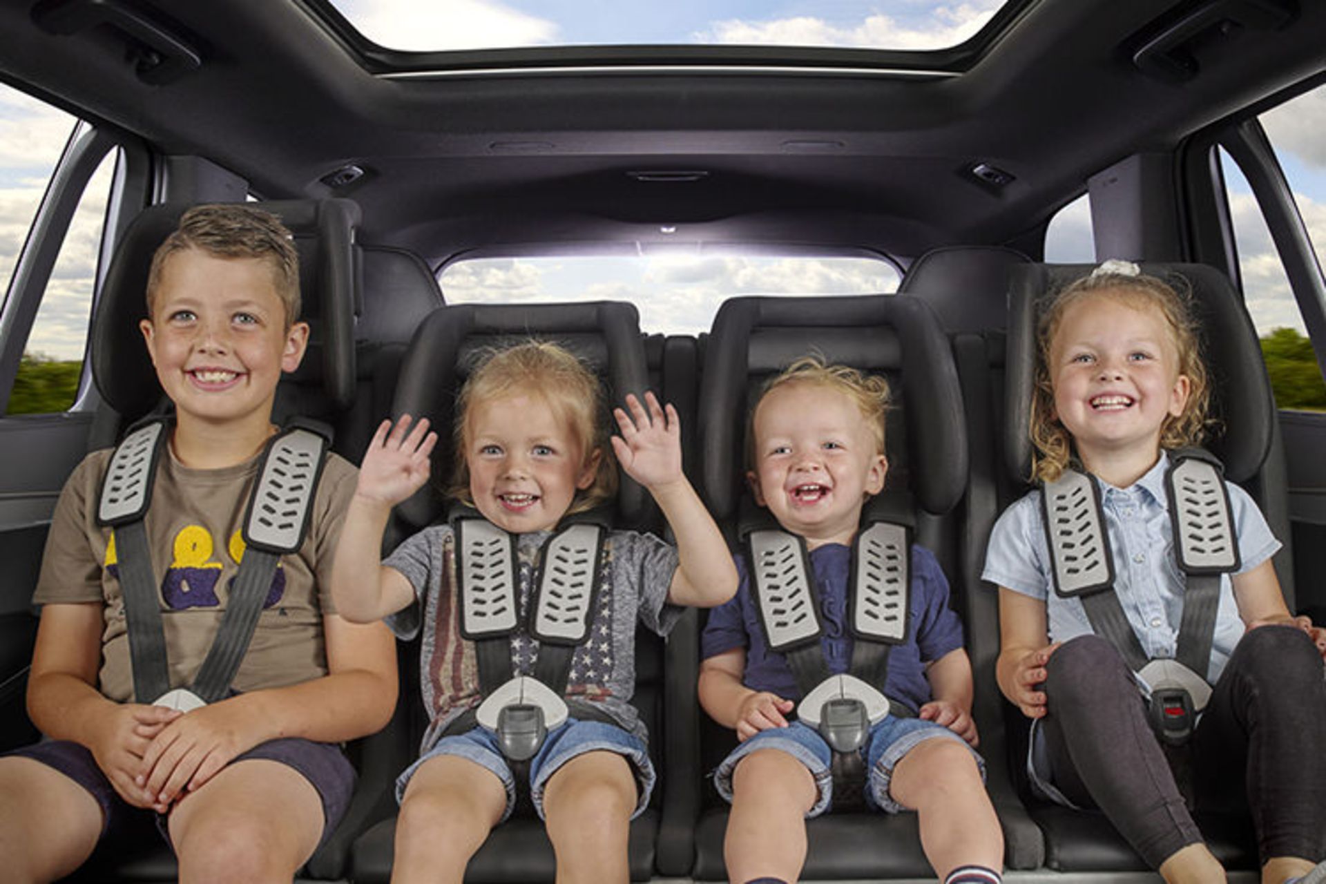 صندلیهای کودک چهار نفره، همانطور که از نام آن مشخص است، چهار صندلی کودک هستند که در یک ردیف افقی، کنارهم نصب شدهاند. کارشناسان CR تولیدات سه برند مختلف را آزمایش کردند؛ در پایان بررسیهای جامع، از بین امتیازهای کیفی ابتدایی، خوب و عالی، تمام آنها در ردهی «ابتدایی» بودند. دلیل امتیاز پایین سه صندلی مختلف، مقاومت ضعیف و شکستن بخش پشتی هنگام آزمایش تصادف با آدمکها اعلام شد.