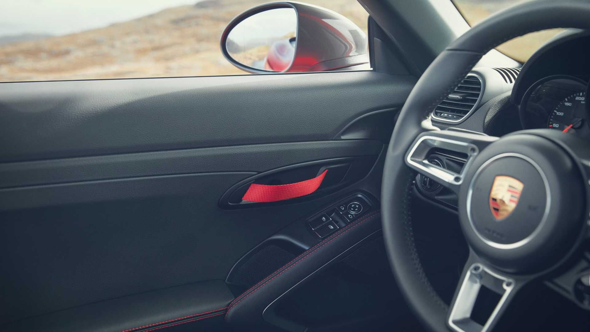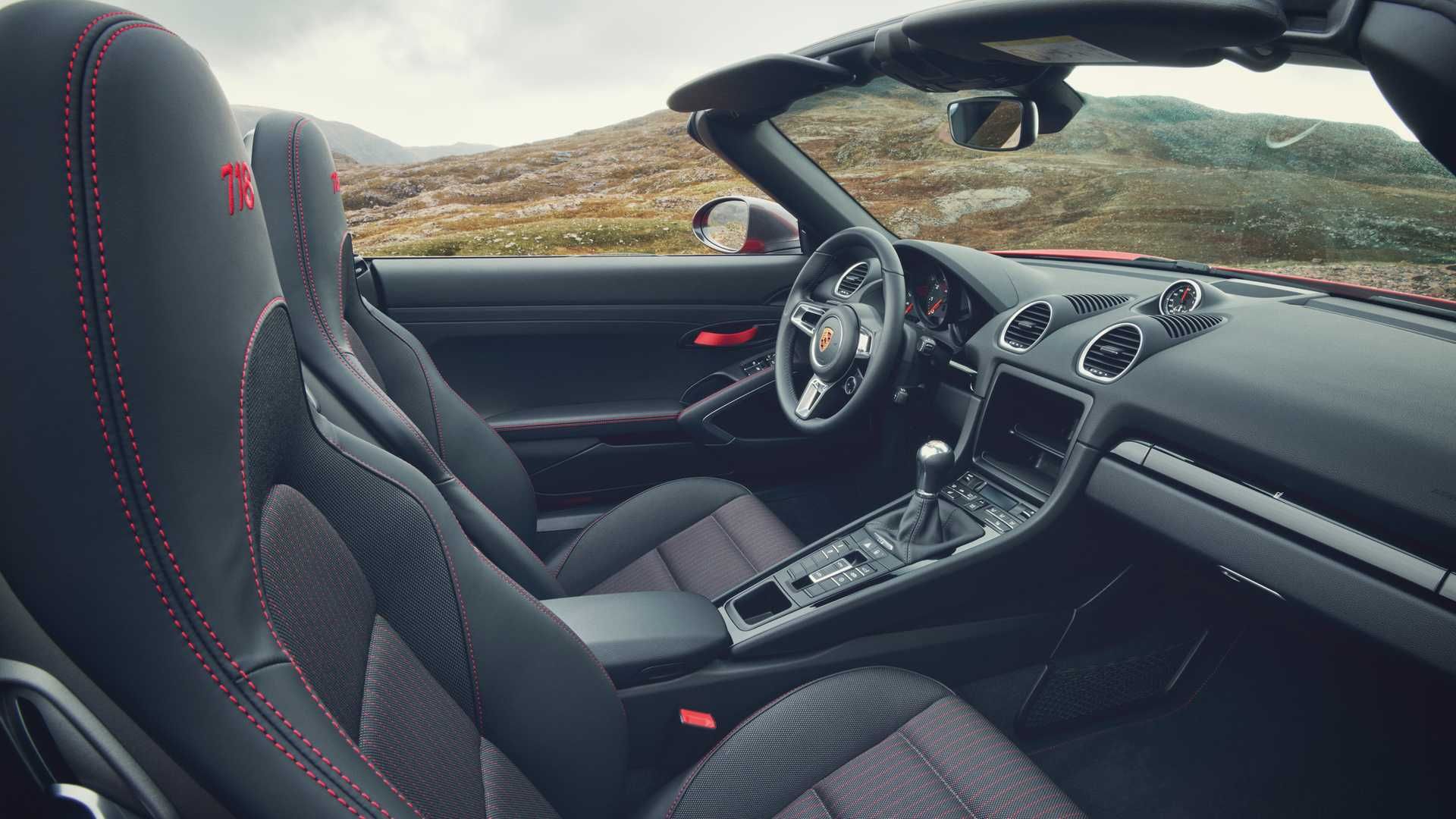 تغییرات فضای داخلی کابین نسبت به مدلهای قبلی پورشه 718 بیشتر قابلتوجه است؛ زیرا از صندلیها و غربیلک فرمان اسپرت همراهبا قلابدوزی «718» روی پشتسریها استفاده میشود. تزئینات سیاهرنگ برای دستهی درها و رکاب با آرم 718 نیز از جمله تغییرات این مدلها به شمار میروند.