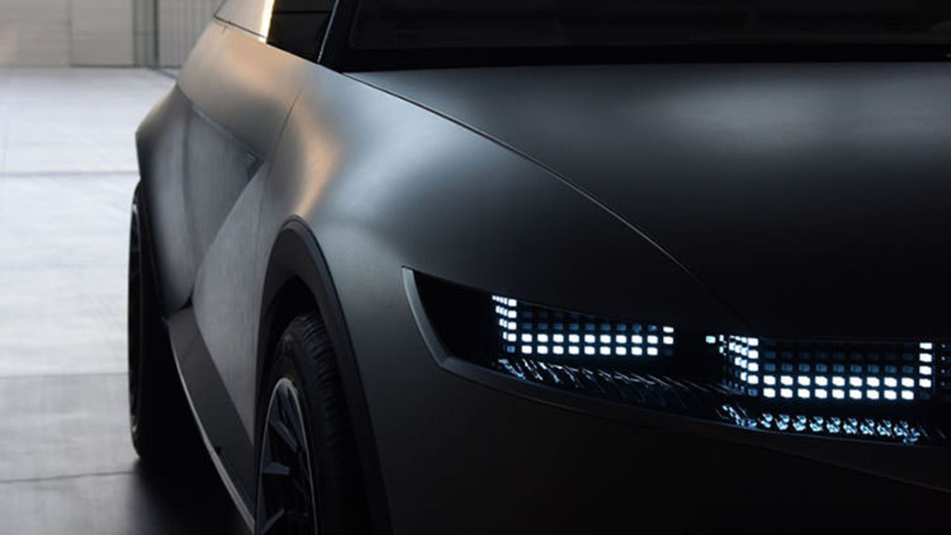 علاوه بر هندسهی جالب و پهنای زیاد بدنه، خودرو چشم ما را به سمت بخش جلویی جلب میکند؛ جایی که چراغ ماتریسی نقطهای بهصورت نواری طولانی در زیر کاپوت خود را نشان میدهد. روی کاپوت لوگو درخشان هیوندای و همچنین نشان «45» را در سمت راست و پایین سپر جلو مشاهده میکنیم. چنین طراحی در نورپردازی عقب نیز تقلید شده است. در بخش جانبی خودرو، چراغهای LED هوشمند در پایین درها شارژ باقیمانده از باتری خودروی الکتریکی را نشان میدهند؛ بنابراین راننده حتی قبل از وارد شدن به داخل کابین 45EV، از شارژ و میزان شعاع حرکتی اطلاع مییابد. آینههای سنتی با دوربینهای جانبی تعویض میشوند که لنزهای آنها میتوانند زیر برف پاککن بچرخند تا در صورت نیاز از هرگونه آلودگی تمیز شوند.