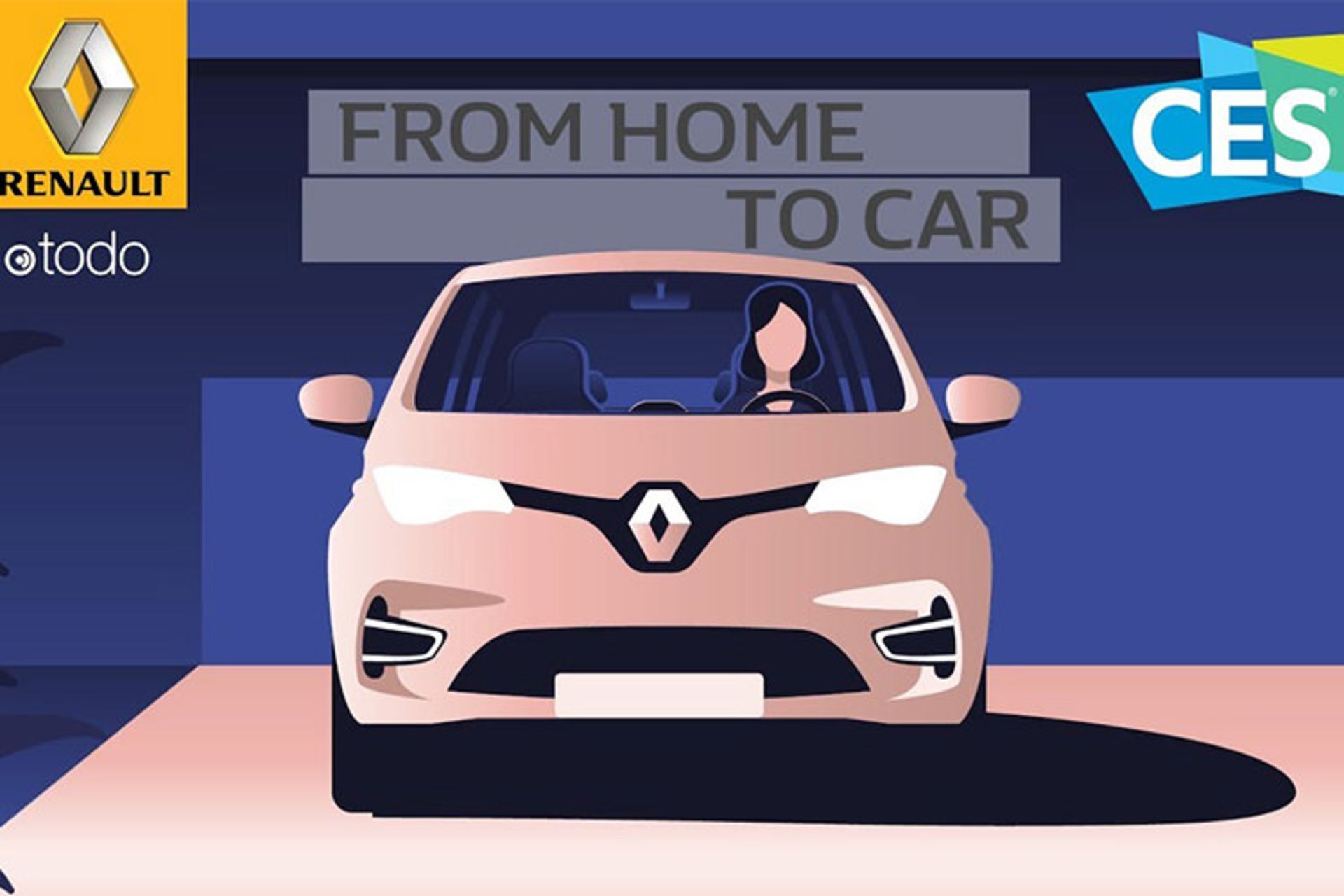 رنو با همکاری شرکت فرانسوی اوتودو (Otodo) فناوری جدیدی طراحی کرده که بین خودرو و خانه هوشمند ارتباط ایجاد میکند. رنو این فناوری را خدماتی جدید برای راه پیداکردن خودروهایش به زندگی دیجیتالی مصرفکننده تعریف میکند.