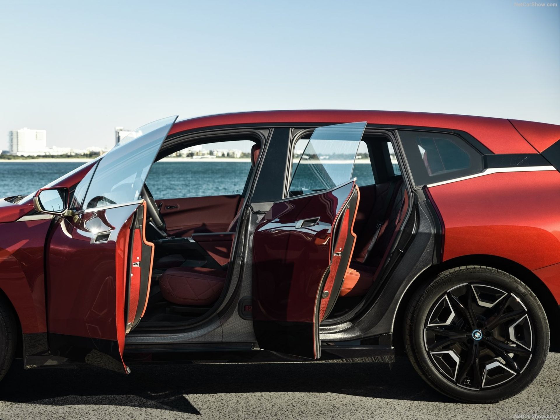 در نمای جانبی و پشت iX، خلاقیت بیشتری دیده میشود. چراغهای باریک و نسبتاً ساده، حالتی مینیمال و چشمنواز ارائه میکنند. حجمدهی درپوش صندوق نیز، هماهنگ با دیگر اجزا و بسیار استادانه اجرا شده است. جایگاه مناسب برای پلاک و چراغهای هشدار در نمای عقب iX دیده میشود؛ هرچند که حجم نسبتاً زیاد پلاستیک سیاهرنگ، آزاردهنده بهنظر میرسد. از دیگر نکات جالب در طراحی این خودرو میتوان به چرخهای بزرگ در اندازههای انتخابی ۲۰ تا ۲۲ اینچ اشاره کرد که یک قابلیت خاص و مشابه X7 است.