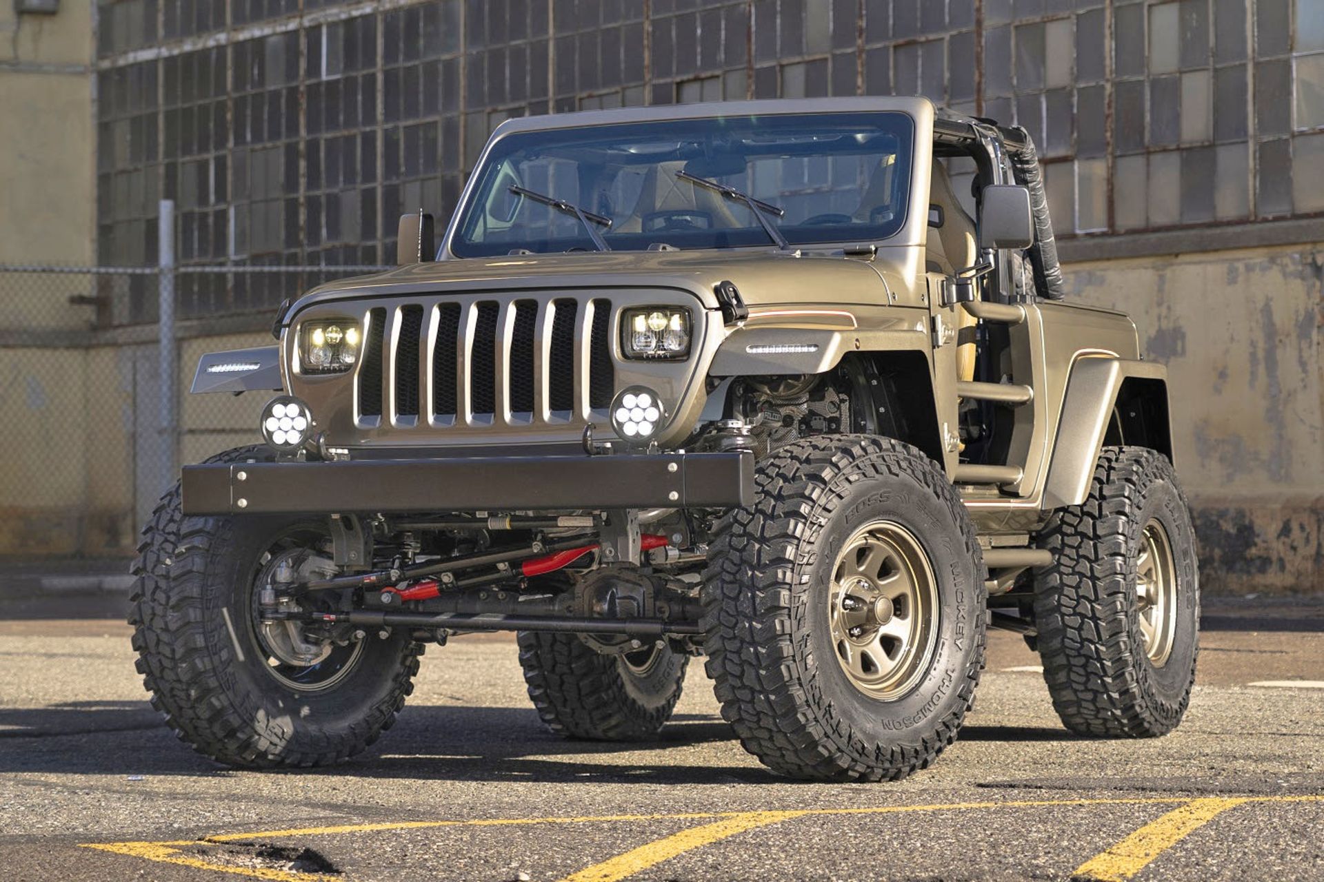 کوادراتک تنها به طراحی مجدد بخش جلویی جیپ رانگلر بسنده نکرده است؛ بلکه از بهترین لوازم جانبی موجود در کاتالوگ خود بهره برد تا YJL را به گزینهای مورد اعتماد در مسیرهای دشوار تبدیل کند. این خودروی آفرود هماکنون کیت بالابرنده تعلیق ۳٫۵ اینچی به دست میآورد که فضای کافیدر تغاریهای گلگیر ایجاد میکند تا مجموعهای از لاستیکهای ۳۷ اینچی Mickey Thompson Baja Boss به همراه رینگهای ۱۷ اینچی همرنگ بدنه، داخل آن قرار بگیرند. ریلهای محافظ برخورد با سنگ، درهای لولهای و تغاریهای گلگیر نیز از نو طراحی شدهاند.