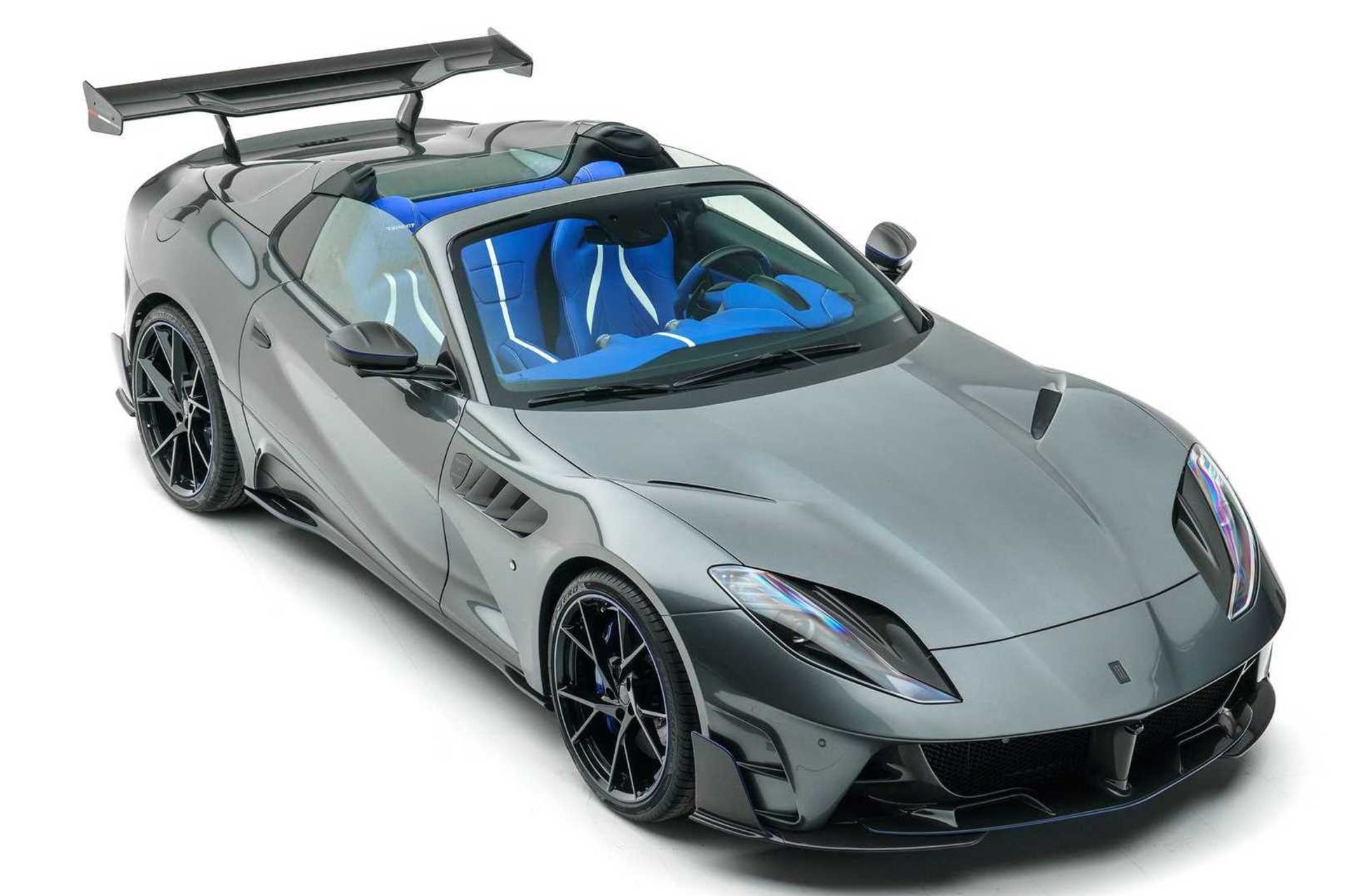 در نگاه اول، بدنهی فراری 812 استالون ساخت منصوری چندان متفاوت از نمونهی اصلی نیست؛ اما با کمی دقت، میتوان ادوات فیبرکربن و جزئیات خاص در این سوپراسپرت سفارشی را تشخیص داد. بال عقب، بریدگیهای هدایتکننده هوا در گِلگیرها، سپرهای طرفین بدنه و رینگهای سیاه، ویژهی این خودرو طراحی شده است.