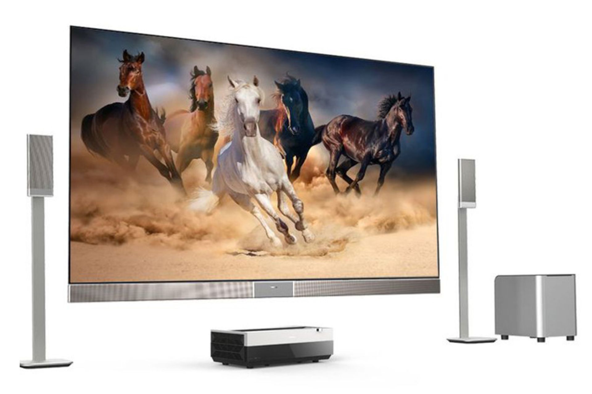 هایسنس یک محصول ۱۰۰ اینچی با قیمت ۱۳ هزار دلار معرفی کرده است که تابستان سال جاری میلادی راهی بازار خواهد شد. این محصول که 100H10D نام دارد تلویزیون واقعی نیست، بلکه سیستمی متشکل از پرده، سیستم صوتی ساراند و یک پروژکتور لیزری کوتاه برد است. هایسنس اعلام کرده است سیستم نمایشی خود را تابستان سال جاری فقط در بازار آمریکا عرضه خواهد کرد.