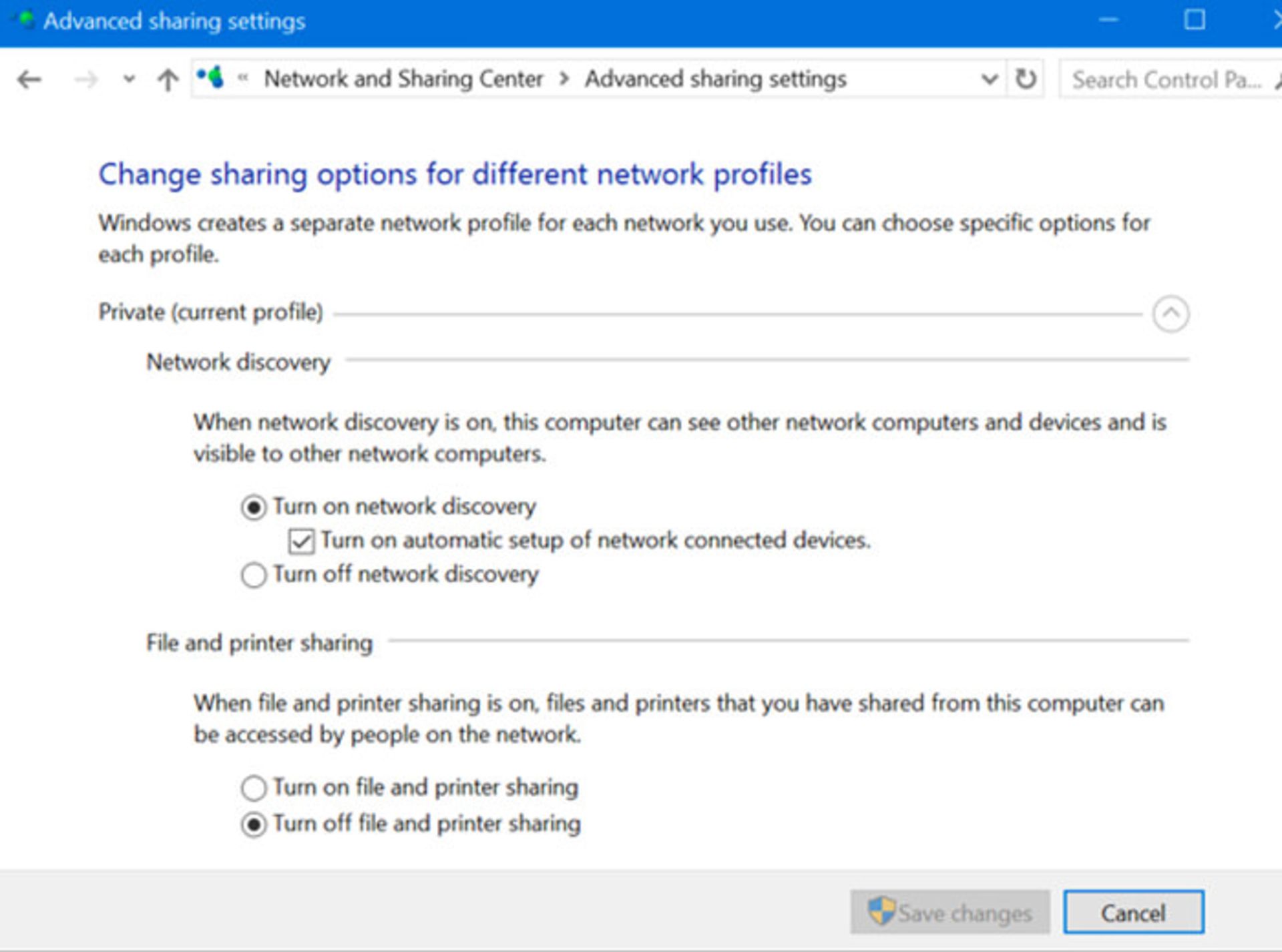 میتوانید هنگام استفاده از شبکههایی که قابل دسترس برای عموم هستند، از گزینهی مربوط به شبکهی عمومی و هنگام استفاده از شبکههای خانگی یا محل کار خود، از گزینهی مربوط به شبکهی خصوصی استفاده کنید. پیشنهاد ما این است که همیشه از شبکهی عمومی بهره برده و فقط در صورتی که در شبکهی خانگی یا محل کار خود قصد به اشتراکگذاری فایل یا استفاده از قابلیت کشف در شبکه را دارید، از شبکهی خصوصی استفاده کنید.