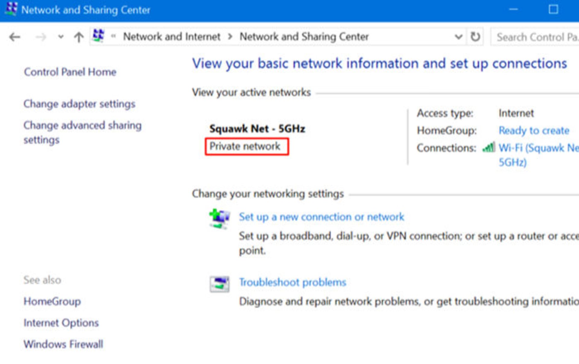 به طور معمول، ویندوز 10 در اولین اتصال به اینترنت سوالی مبنیبر این که “آیا مایل هستید که رایانهی شما در شبکهی جاری به وسیلهی دیگر دستگاهها قابل کشف باشد؟” از کاربر میپرسد. اگر دکمهی «Yes» را بزنید، سیستم عامل شبکهی جاری را به عنوان یک شبکهی خصوصی در نظر میگیرد. اما در صورت فشردن دکمه «No»، شبکهی جاری به عنوان یک شبکهی عمومی در نظر گرفته خواهد شد. میتوانید با استفاده از بخش Network and Sharing Center موجود در کنترل پنل ویندوز 10، به نوع شبکهی جاری پی ببرید.