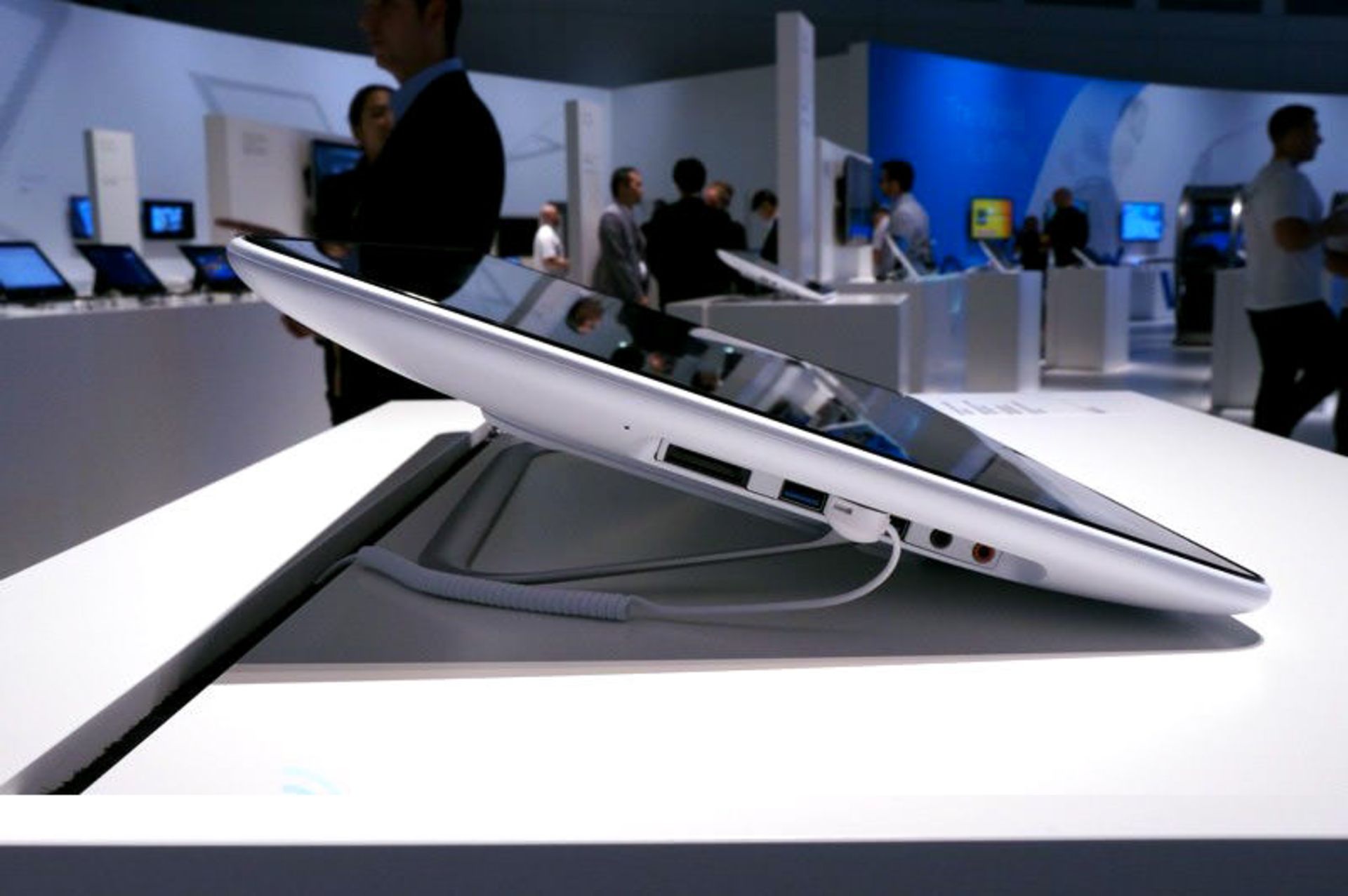 این تبلت 20 اینچی حدود 5.25 کیلوگرم وزن دارد و بعید است که بهعنوان یک دستگاه قابل حمل استفاده شود. متأسفانه رزولوشن صفحهنمایش IPS این دستگاه 1600 در 900 است که مأیوسکننده است. هرچند صفحه لمسی آن به خوبی تلفنهای هوشمند کار نمیکند اما کارکرد آن قابل قبول است. روی این صفحهنمایش شما به خوبی میتوانید Fruit Ninja را بازی کنید.