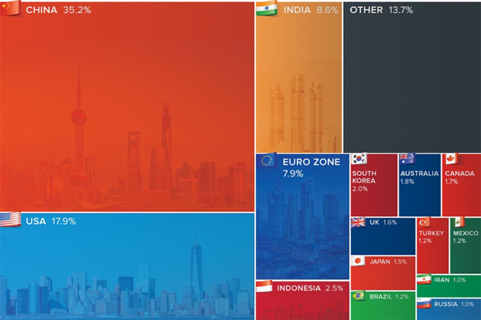 اگرچه رشد اقتصادی چین تا حدودی کاهش پیدا کرده اما بانک جهانی پیشبینی کرده است رشد اقتصاد این کشور در سال جاری در مجموع ۶.۵ درصد و در سالهای ۲۰۱۸ و ۲۰۱۹ حدود ۶.۳ درصد خواهد بود. چین، دومین بزرگترین اقتصاد دنیا را دارد و با اضافه شدن این ارقام متوجه میشویم اقتصاد آن رشد باورنکردنی داشته است. در حال حاضر حدود ۳۵.۲ درصد رشد تولید ناخالص جهانی متعلق به چین بوده و خروجی اقتصادی آن بیش از ۲.۳ تریلیون دلار است.