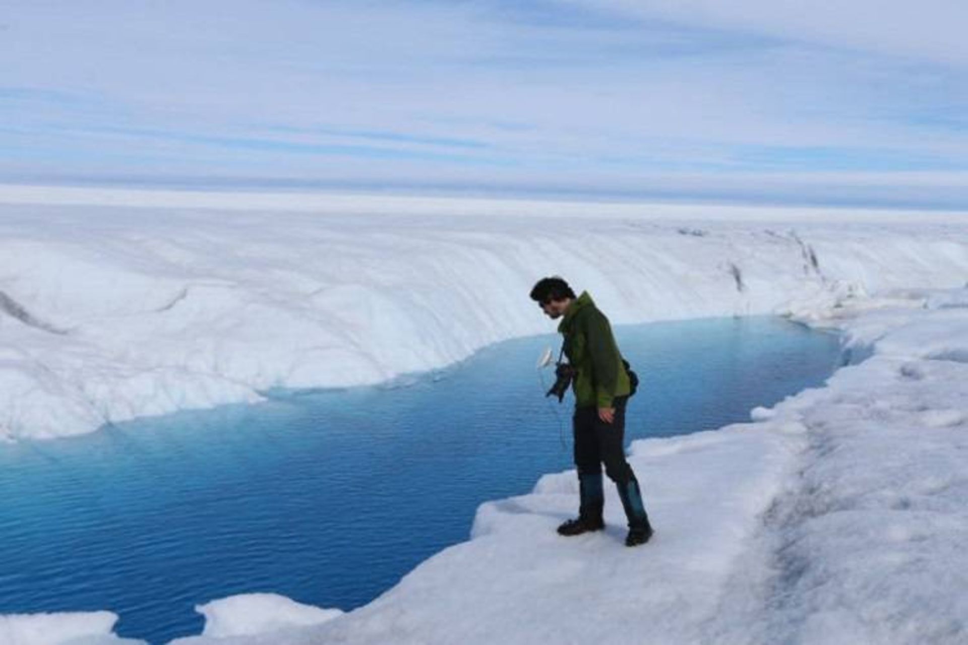 حوضچههای حاصل از ذوب یخ آب روی صفحهی یخ شمال غربی گرینلند ، ۳۰ ژوئیهی ۲۰۱۹