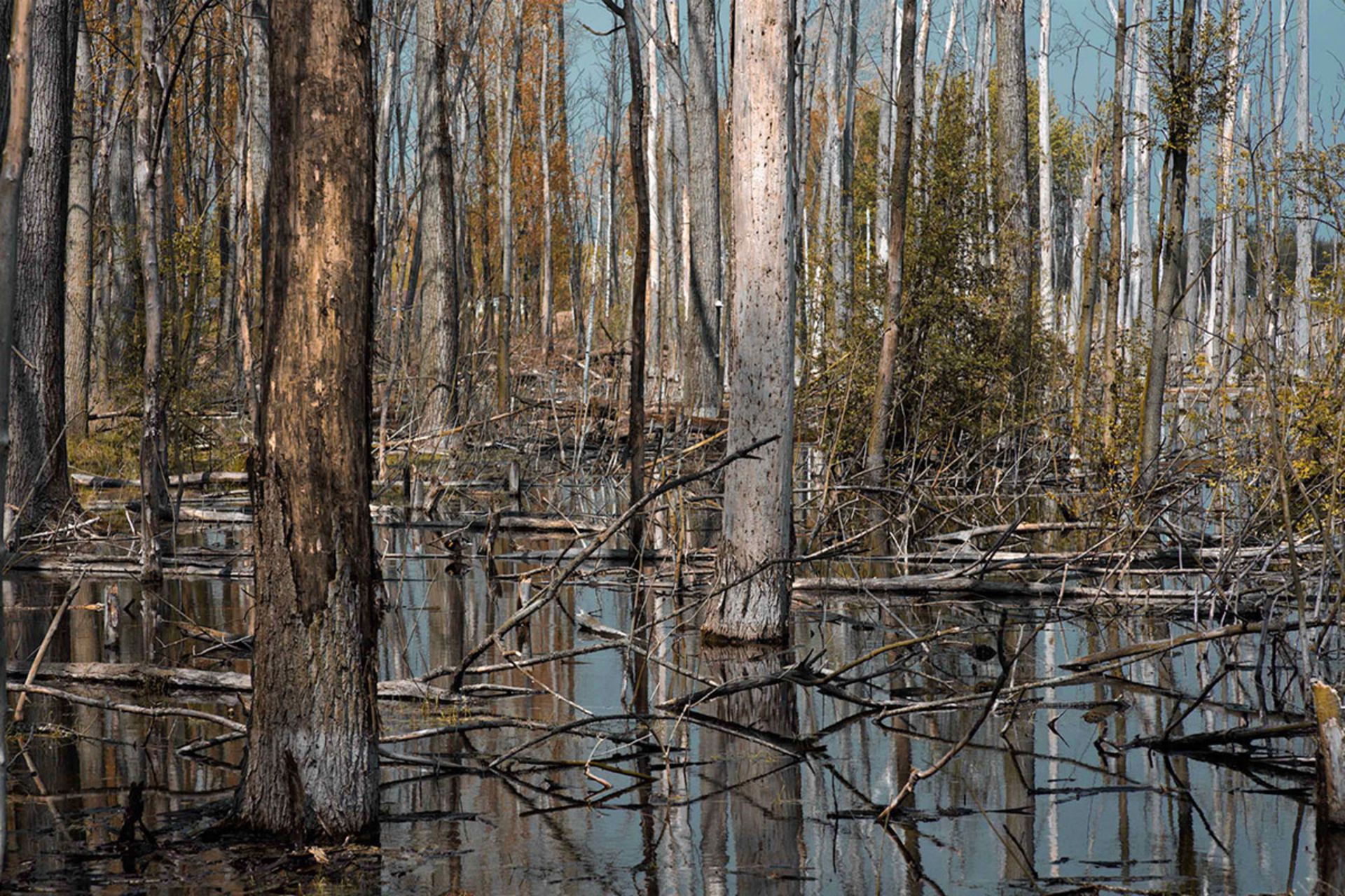 براساس پژوهشها در منطقهای نزدیک به پناهگاه ملی حیات وحش رودخانهی الیگیتور در کارولینای شمالی، سیلابها به پدیدهای رایج تبدیل شدهاند. درختانی که در این آبها رشد میکنند کوچک و کوتاه هستند و بسیاری از آنها مردهاند. در تمام نقاط سواحل کارولینای شمالی شواهدی از نابودی جنگلها دیده میشود. درختهای در حال مرگ یا مرده تقریبا در تمام کانالهای طبیعی بهچشم میخورند. امیلی یوری، بومشناس دانشگاه دوک در حال بررسی واکنش تالابها به بالا آمدن سطح دریا است. او میگوید سیلاب بهعنوان یکی از شواهد تغییرات اقلیمی چشماندازهای ساحل اقیانوس اطلس را تغییر میدهد. این تغییرات محیطی، حیات وحش، اکوسیستمها، مزارع محلی و حتی کسبوکارهای جنگلداری را تهدید میکنند.