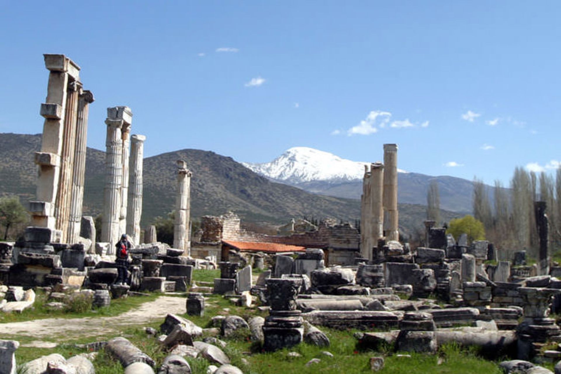 جمعیت تقریبی شهر باستانی آفرودیسیاس در یونان باستان ۱۰ هزار نفر بوده است اما این شهر بیشتر بهخاطر طراحی معماری شهری، بناهای یادبود و مجسمههای مرمری معروف است. دروازهی پروپیلون (که استینسون در حال بازسازی و بررسی آن است) به یک محوطهی بزرگتر معبد راه پیدا میکند که وقف خدای آفرودیت و سپس وقف امپراطورهای ژولیو کلاودی قرن اول میلادی شد. بهگفتهی استینسون: