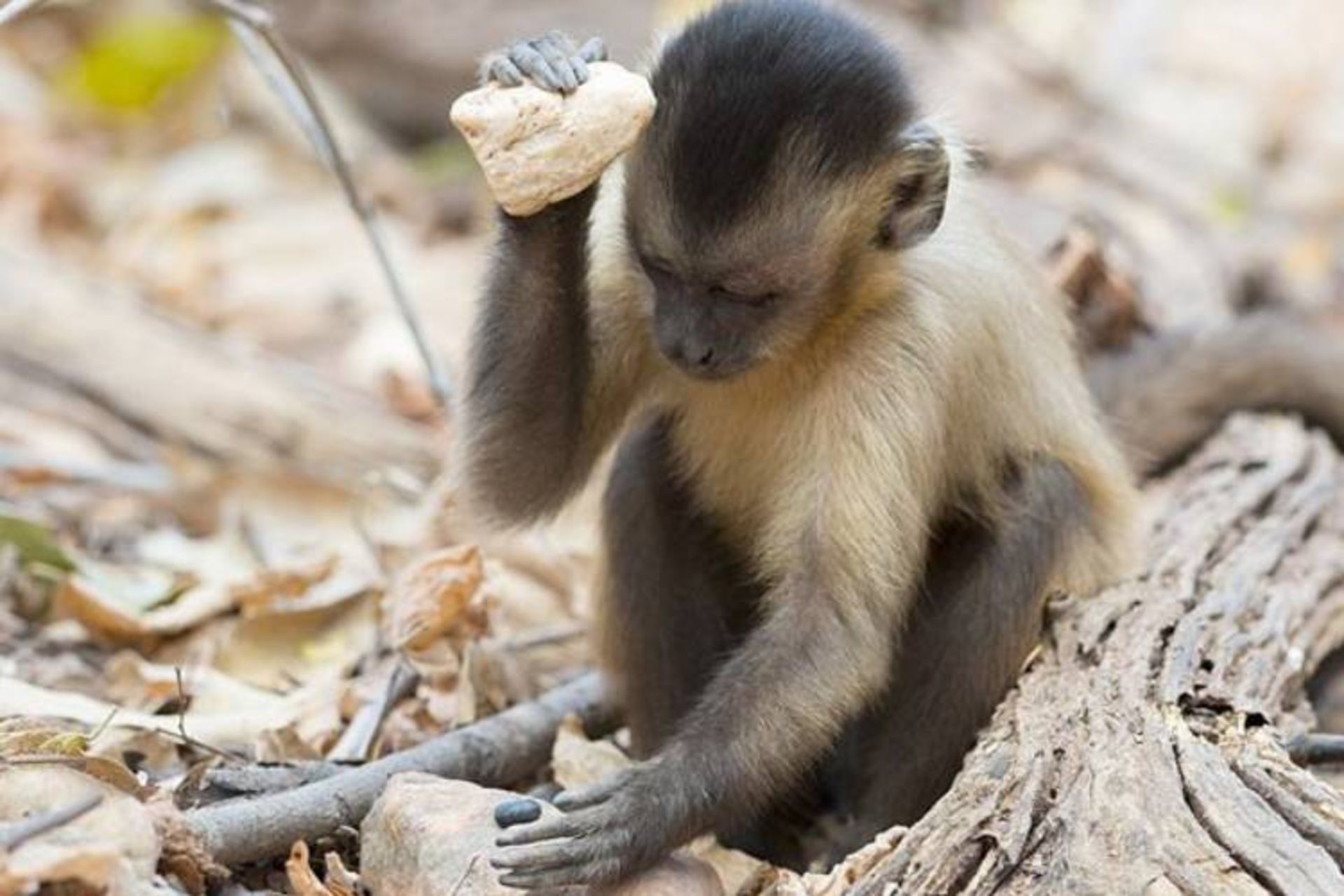 در دره‌ای دورافتاده در پارک ملی سرا دا کاپیوارا در برزیل، گروهی از میمون‌های کاپوچین ریش‌دار برای شکستن پوسته‌ی بادام هندی از سنگ‌های کوارتز گرد روی ریشه‌های درختان یا دیگر سنگ‌ها استفاده می‌کنند. باستان‌شناسان زیر پاهای آن‌ها ابزارهای دورانداخته‌شده‌ای با قدمت حداقل سه‌هزار سال پیدا کرده‌اند.