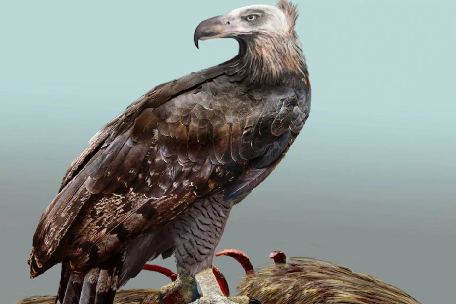 عقاب هاست ممکن است وجه اشتراک دیگری نیز با کرکسها داشته باشد: سر طاس.
