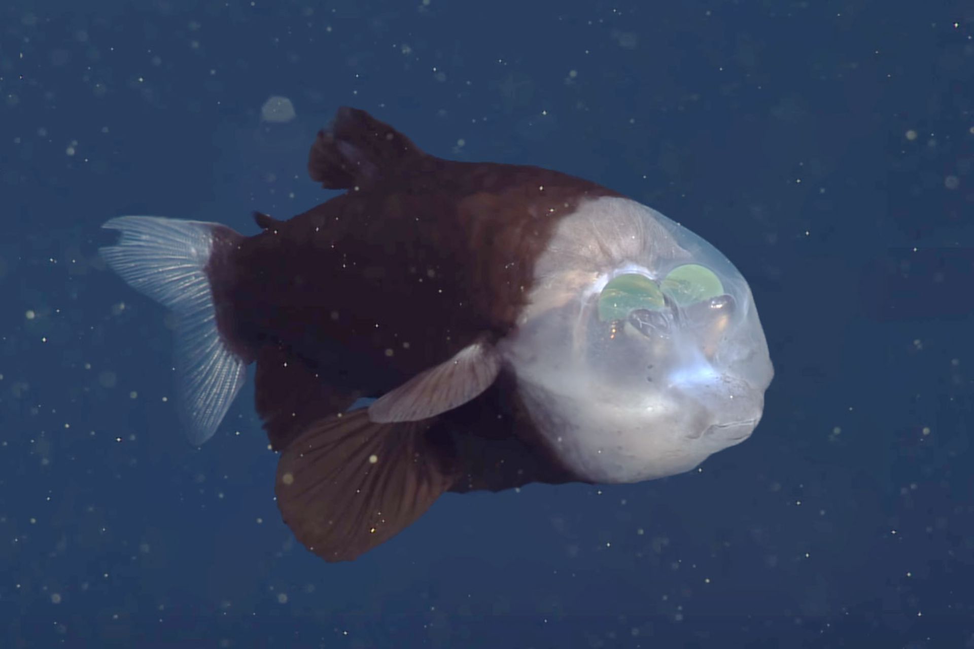 صدها متر زیر سطح خلیج مونتری در کالیفرنیا، دانشمندان تصاویری از یک ماهی با سر حبابمانند شفاف و چشمان کروی سبز رنگی که از پشت پیشانیاش پیرامون را میبیند، ثبت کردهاند.