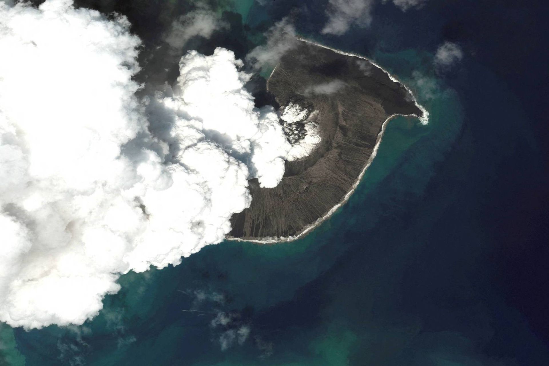 ماهوارهها در تاریخ ۱۵ ژانویه ستون فوران تونگا را مشاهده کردند که به سمت فضا میآمد