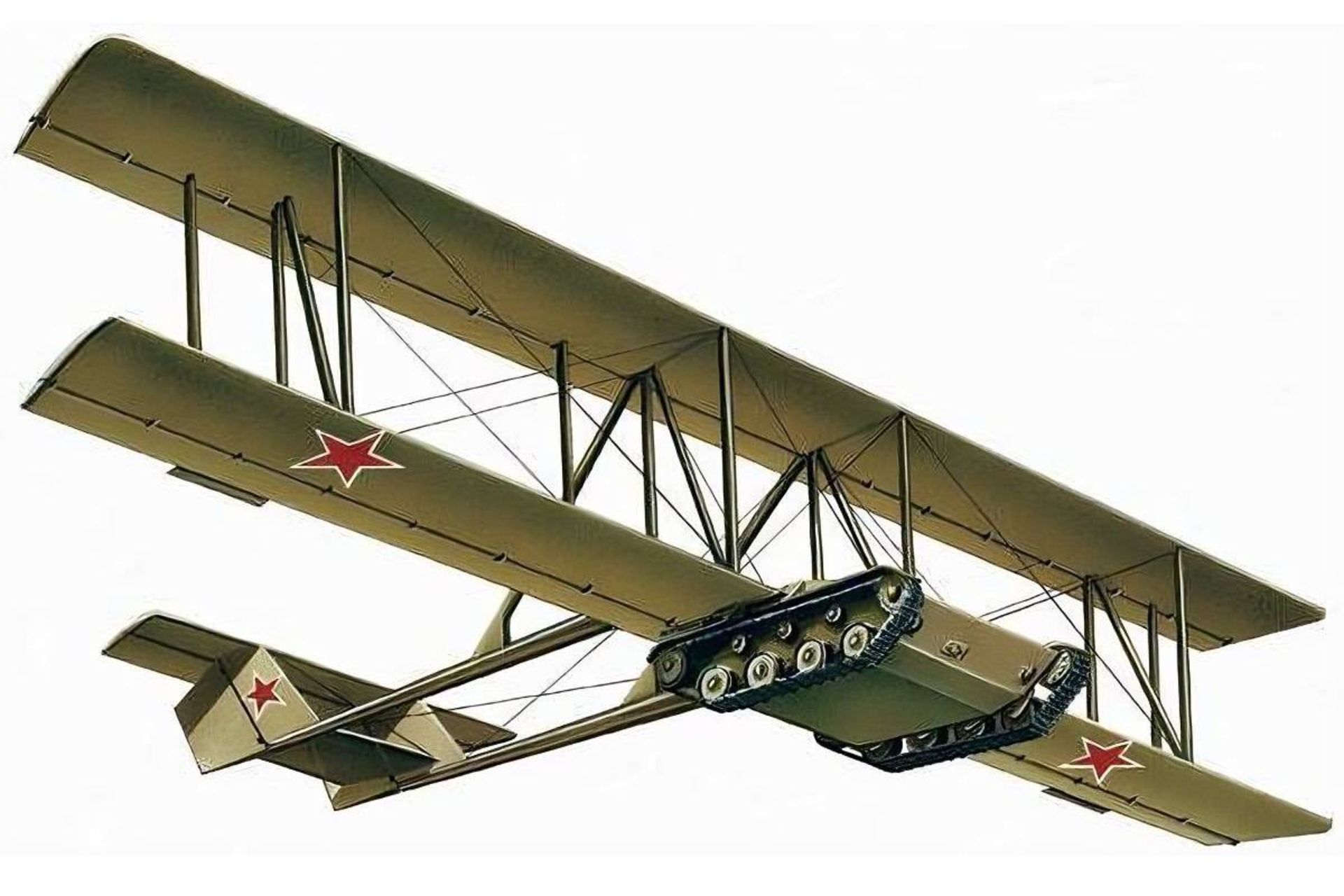 یک ایده این بود که تانکهای زرهی سبک کوچک مجهز به مسلسل زیر بالهای هواپیمای بمبافکن بزرگی بسته شوند. هواپیما میتوانست فرود آید، تانکها را پیاده کند و دوباره پرواز کند. این کار ازنظر فنی امکانپذیر بود، اما عیب مهمی که داشت این بود که باید زمین مسطح کافی در آن حوالی وجود میداشت تا چنین هواپیمای بزرگی بتواند بر زمین بنشیند.