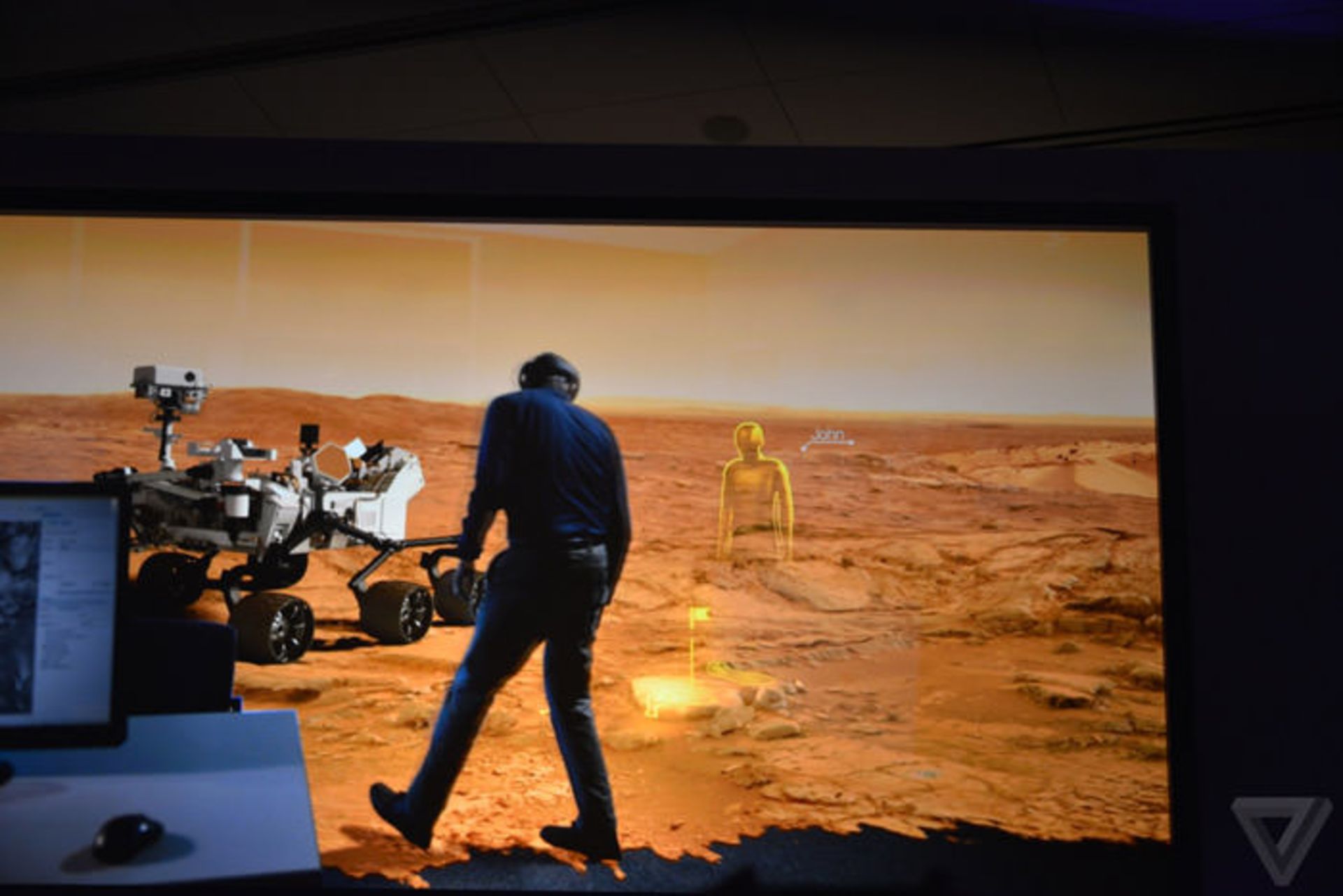 دیشب در اولین دمو که مایکروسافت با همکاری ناسا تهیه کرد بود، نشان داده شد که هولولنز حتی میتواند ما را به صورت شبیه سازی شده به سطح مریخ ببرد. تصاویری که به صورت واقعی توسط مریخنورد کنجکاوی تهیه شده بود، مایکروسافت را قادر ساخته تا یک چشم انداز جدید از مریخ و نقشه کوچکی به اندازه یک اتاق کنفرانس از آن تهیه کند. در اینجا نشان داده شد که شخص چگونه میتواند بر روی مریخ راه برود، خم شود و به سنگها نگاه کند و حتی مریخنورد کنجکاوی ناسا را ببیند.