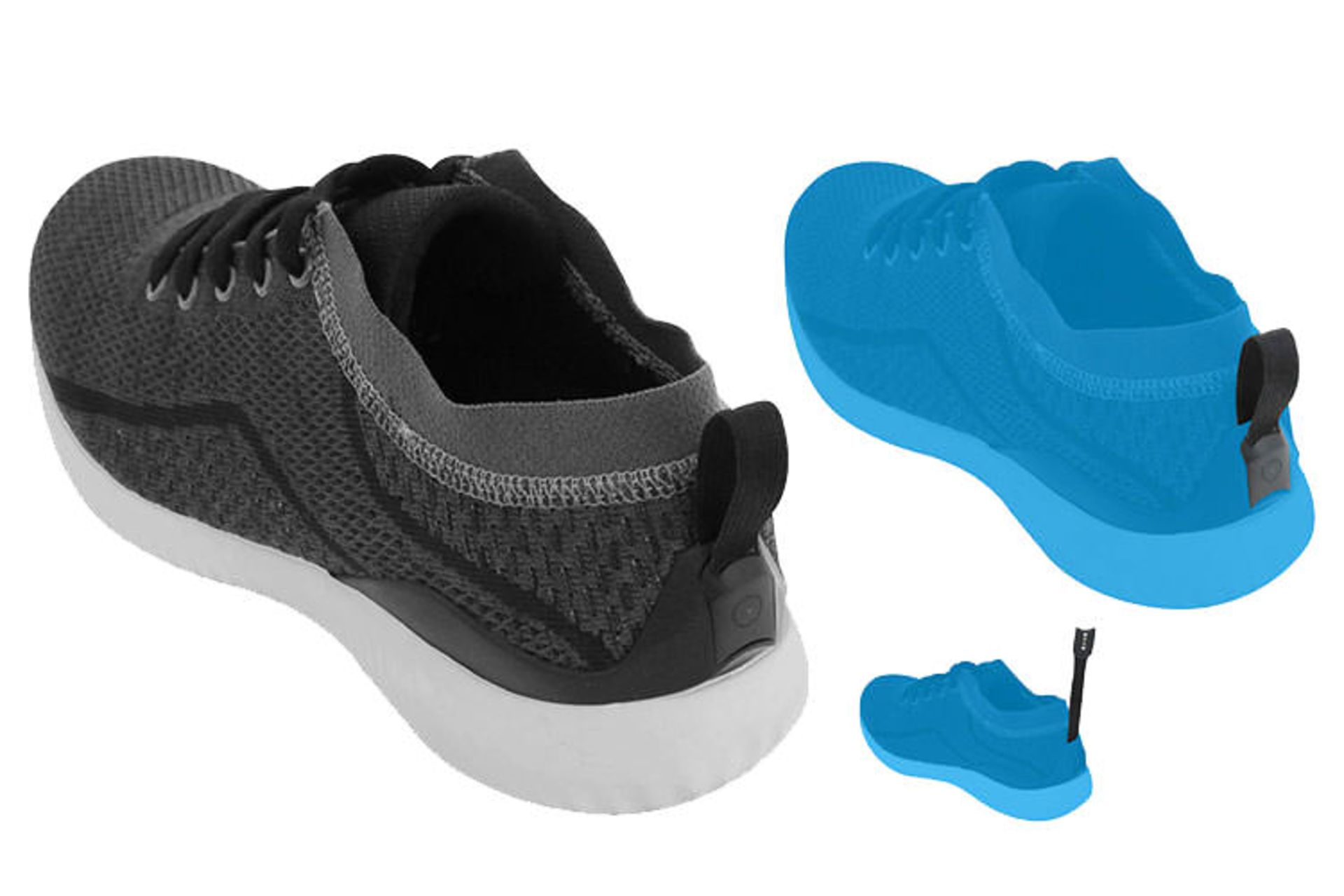 طبق اطلاعات بهدستآمده از مستندات مربوطبه پتنتهای ثبتشده، این کفشها از چرم و مواد مصنوعی تولید میشوند. در مدل A این کفش (تصویر اصلی همین مطلب)، با بالا کشیدن گیرهی روی پاشنه، فعالیت حسگر آغاز میشود و در مدل B (تصویر زیر)، حسگر درون محفظهای که متصل به پاشنه است، تعبیه شده که برای فعال کردن حسگر هوشمند باید پوشش پلاستیکی آن را با دست باز کرد.