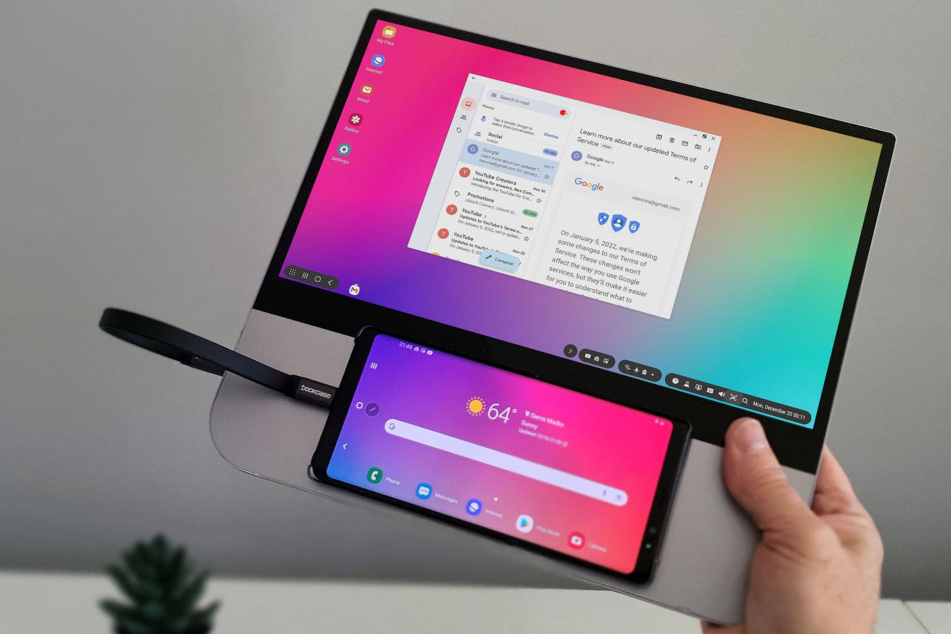 به گزارش notebookcheck، چندین آهنربا تعبیه شده تا بتوان بهراحتی گوشی هوشمند را روی NexPad سوار کرده و بدون نگرانی با آن کار کرد. Nex Computer میگوید میتوانید از تلفن هوشمند نصبشده خود بهعنوان صفحه لمسی یا صفحهنمایش ثانویه نیز استفاده کنید.