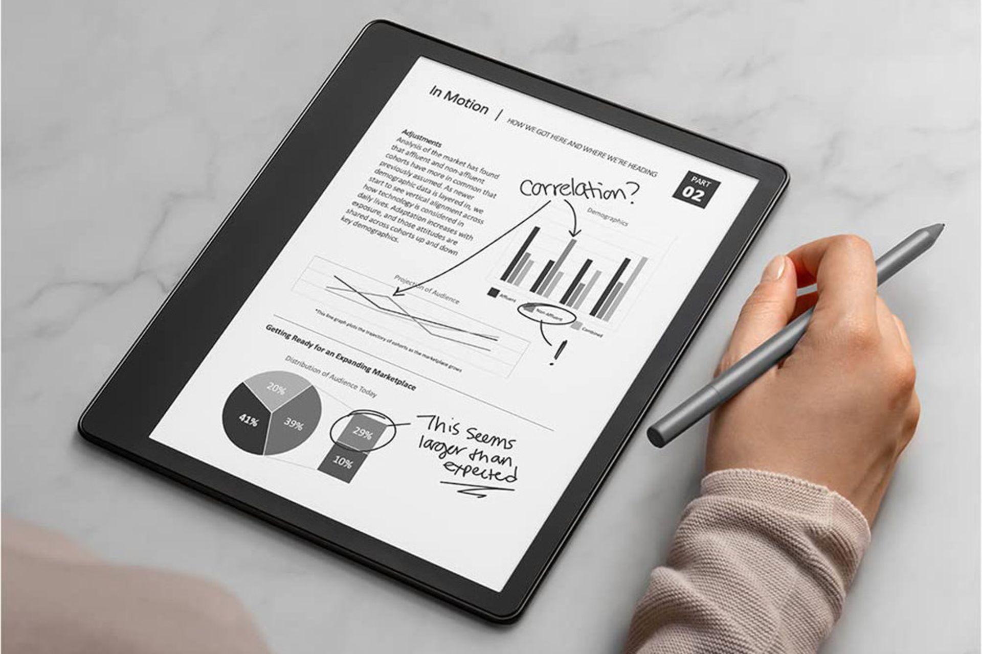 آمازون بزرگترین مدل از کتابخوانهای الکترونیکی سری کیندل را با نام Amazon Kindle Scribe رونمایی کرد. کیندل اسکرایب برای اولینبار در تاریخ کتابخوانهای آمازون از قلم لمسی پشتیبانی میکند تا کاربر بتواند همزمان با مطالعه، نکات مدنظرش را یادداشت کند.
